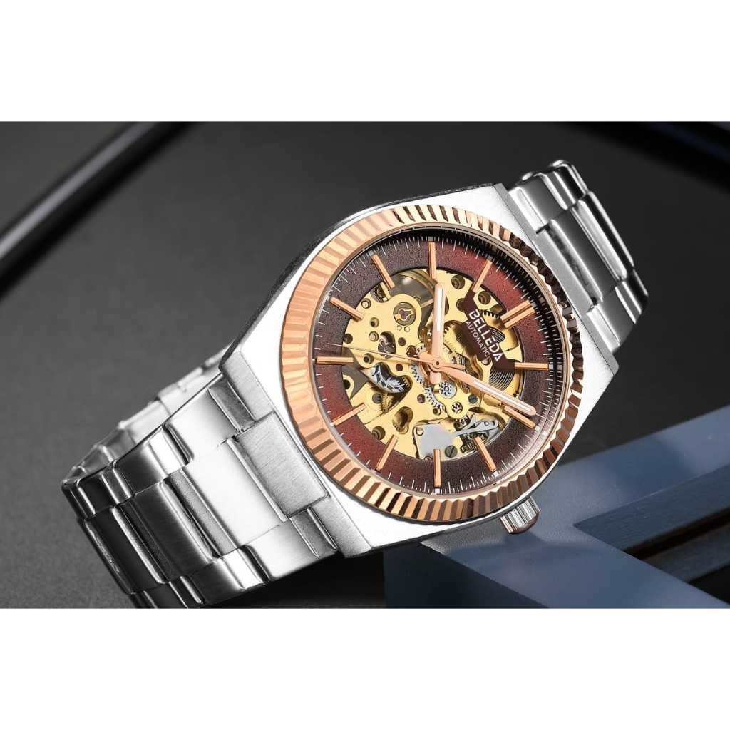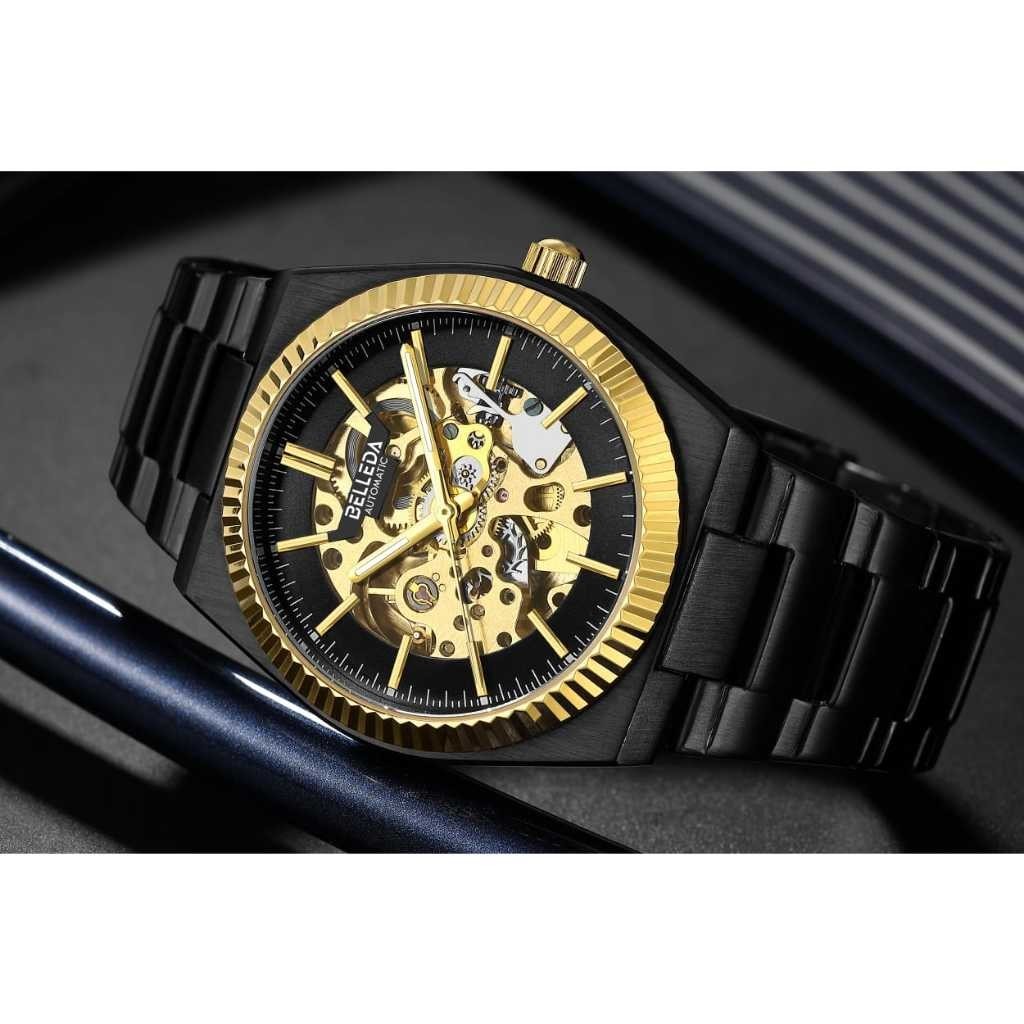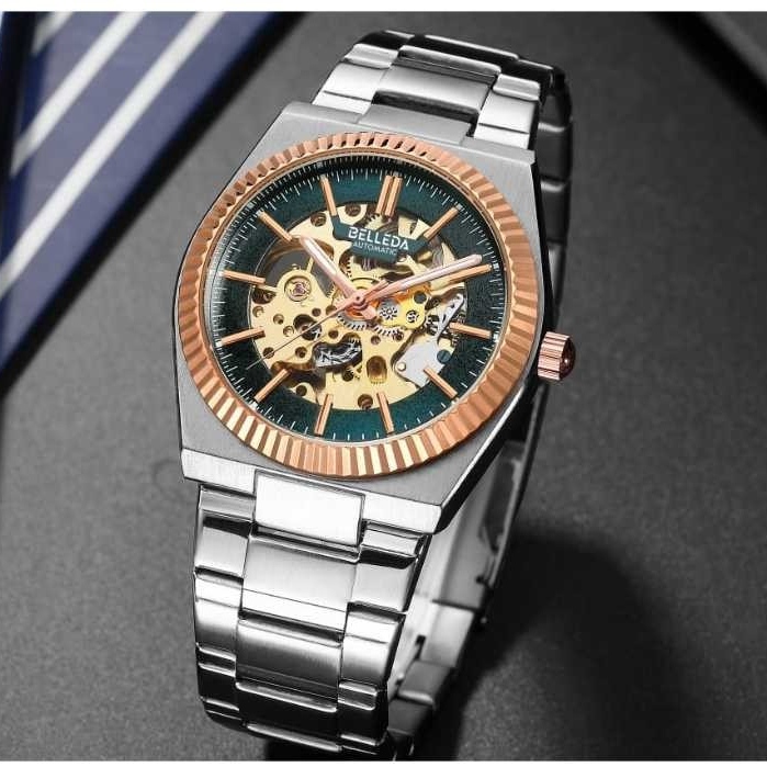 Jam Tangan Pria Belleda 9542 Rantai Model Gear Automatic Tanpa Bterai Slim Mode Watches