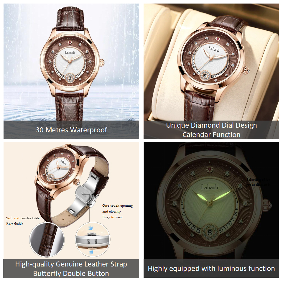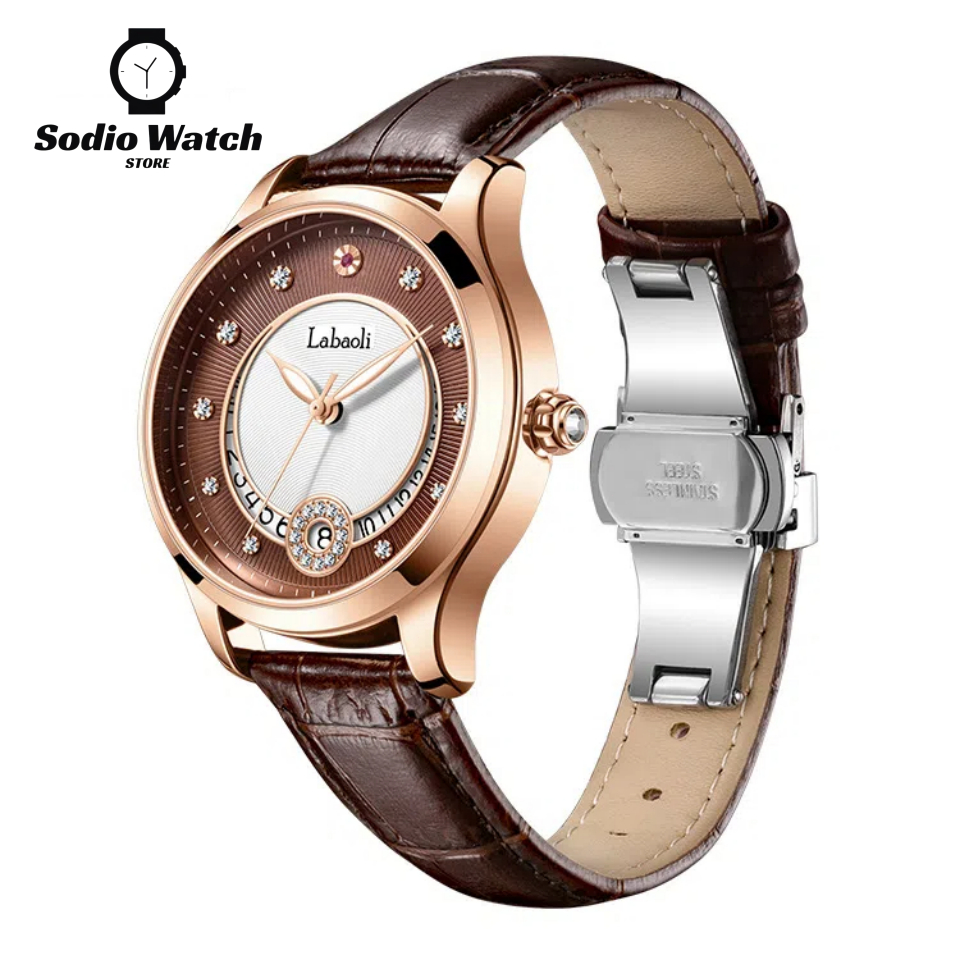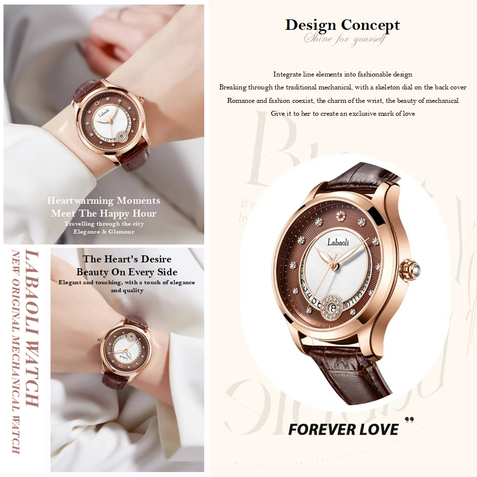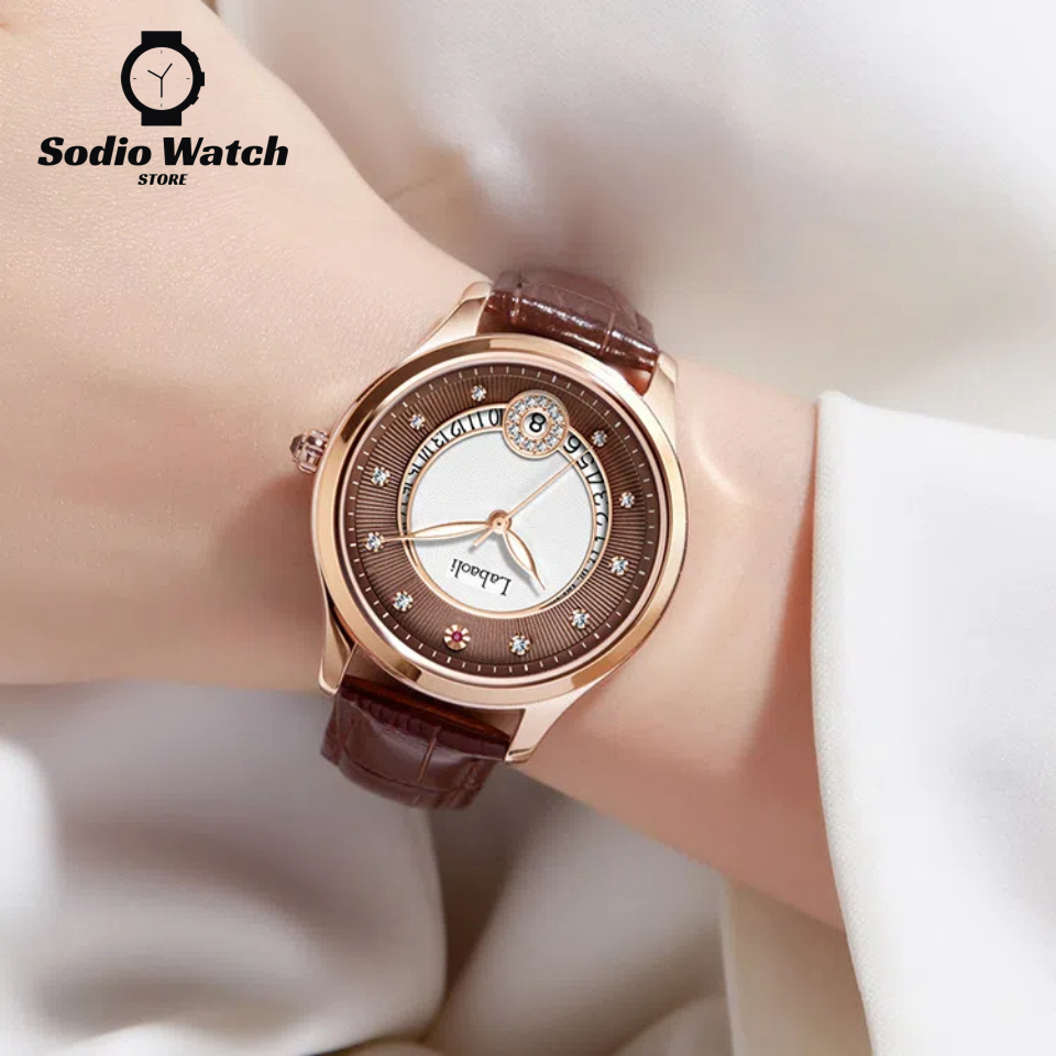 Jam Tangan Wanita Automatic Original Brand Labaoli Baru Anti Air Jam Tangan Kulit Coklat Women Watch