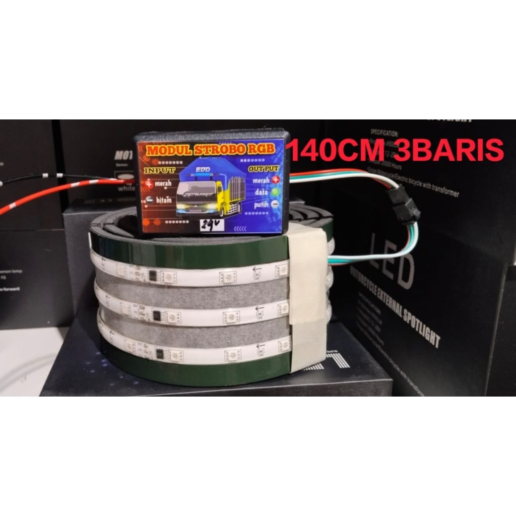 Lampu Strobokaca RGB 12e Mobil pickup & Truk 12/24V lengkap+ul