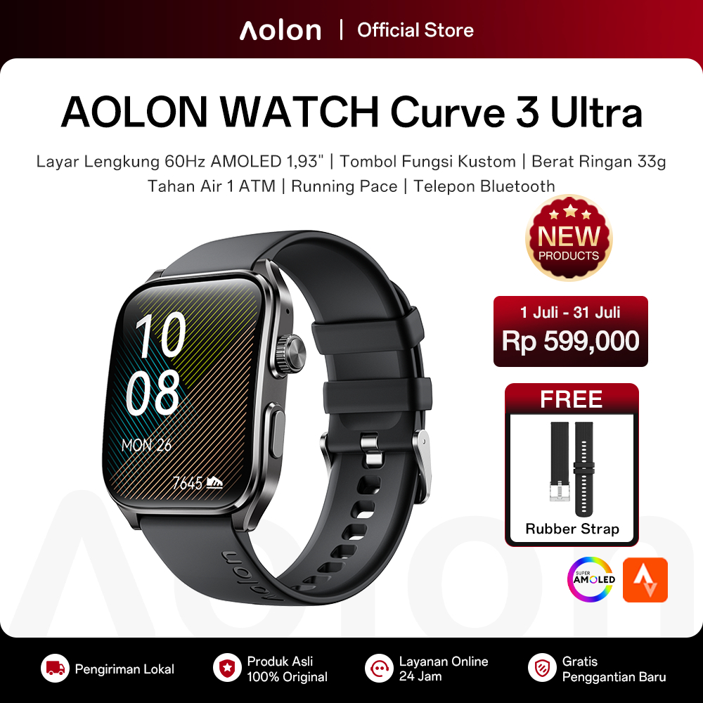 【New】Aolon Curve 3 Ultra Jam Smartwatch 60Hz Amoled 1.93-inci Tombol Kustom Tahan Air 1 ATM Telepon Bluetooth Pace Olahraga Pemantauan Tidur Smart Watch Pria Strava