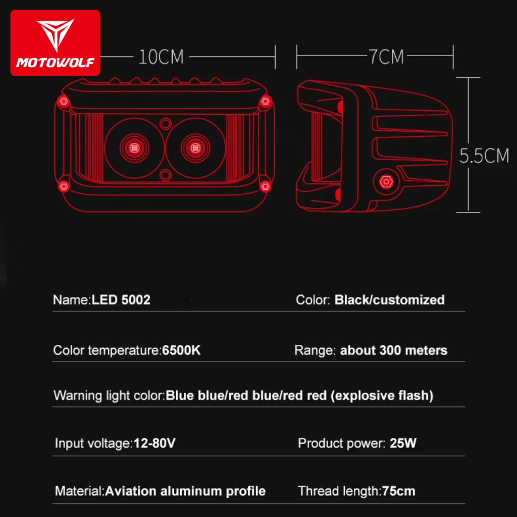 Lampu LED Motor Motowolf Lampu Tembak Strobo 25 Watt Best Quality