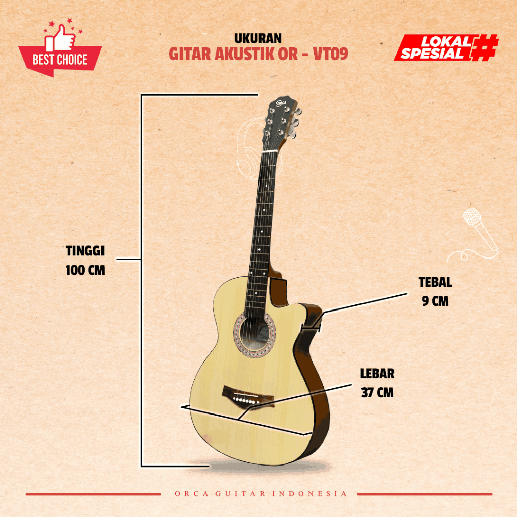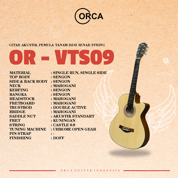 ORCA Gitar Akustik Pemula Tanam Besi OR - VT09 Senar String Guitar