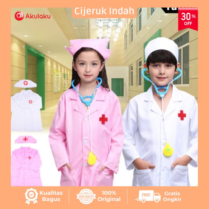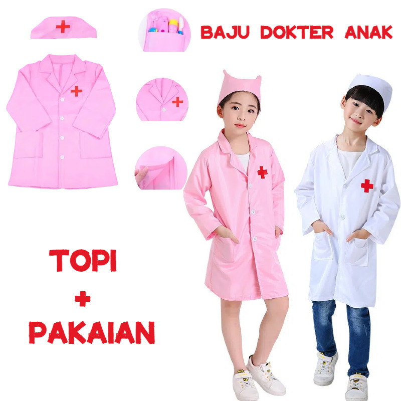 baju profesi anak Ready Stock Baju Dokter Anak Kostum Dokter Anak Baju Profesi Anak Dokter Putih Pink terlaris
