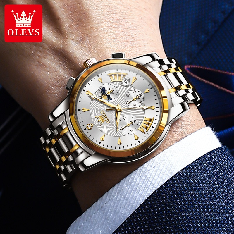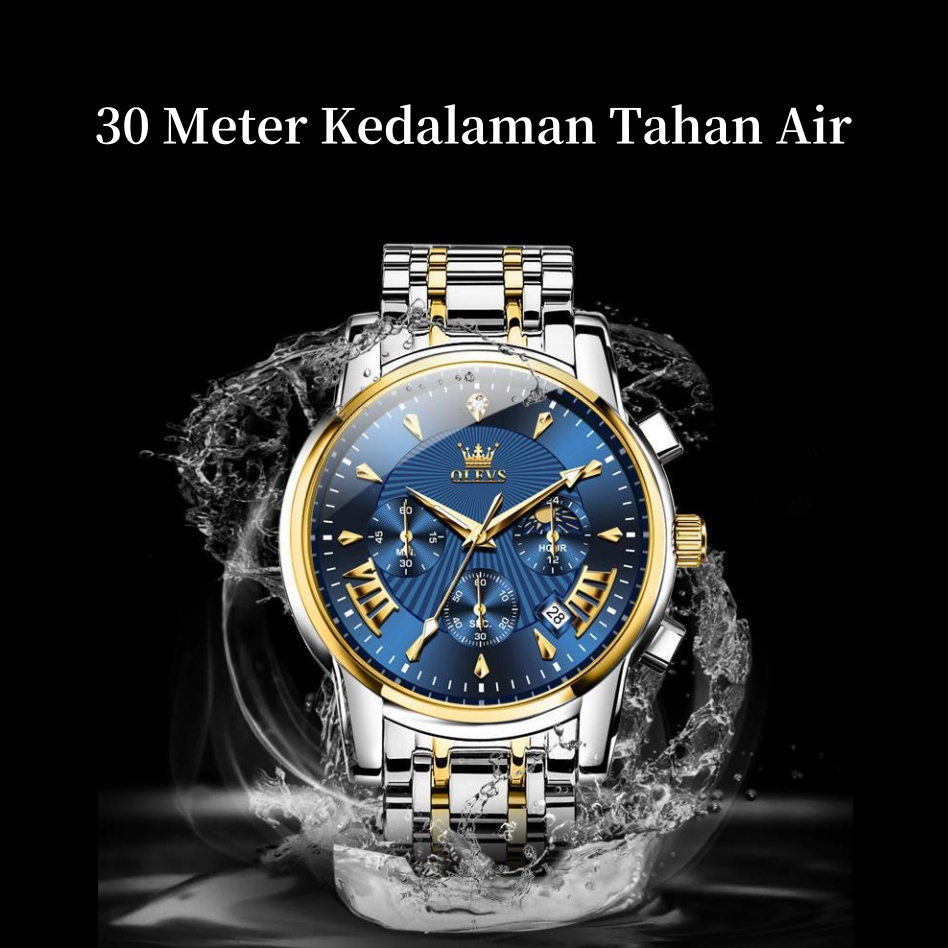 OLEVS Jam Tangan Pria Original 100 PERSEN Automatic Otomatis Anti Air Mewah Luxury - Stainless Steel Rantai Keren Terbaru Watch Men