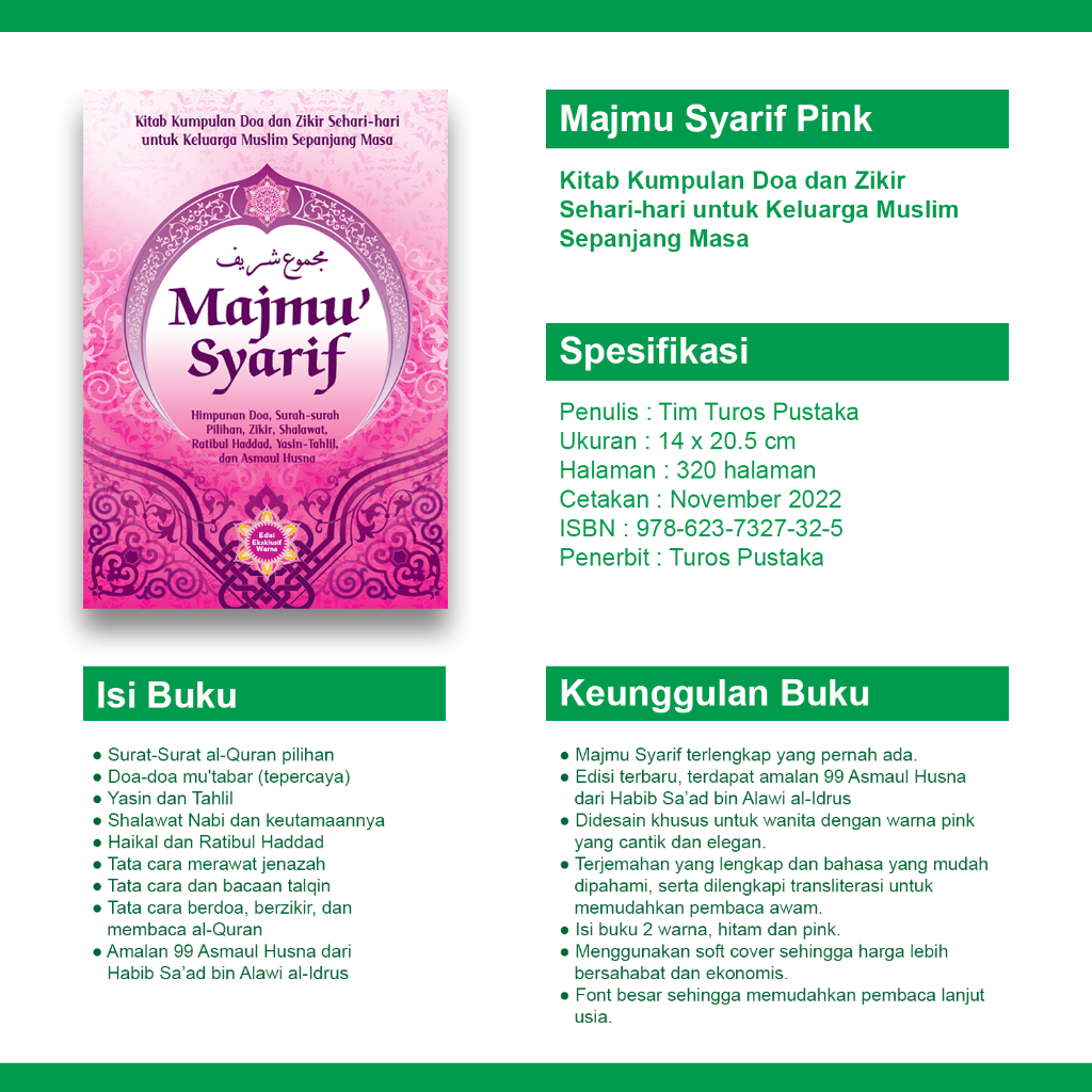 Turos Pustaka Kitab Majmu Syarif Kumpulan Do'a dan Dzikir Religious Book Pink Soft Cover 2022