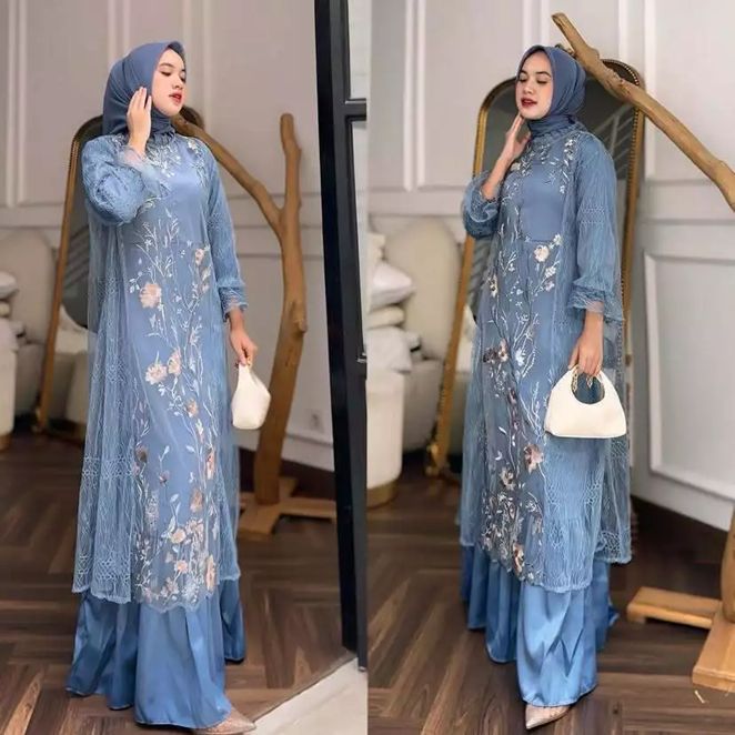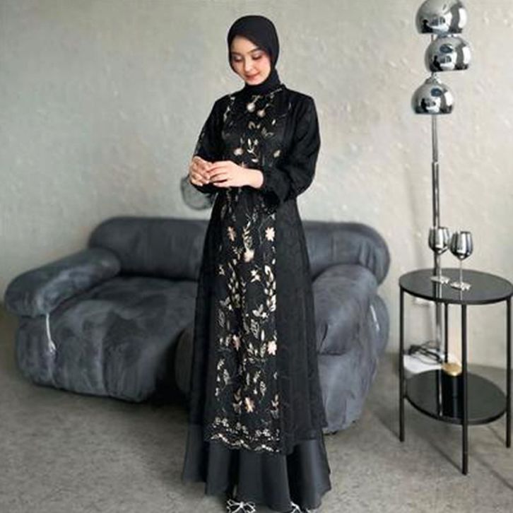 Gamis Wanita - (Lebaran Series) Gamis Brokat Wanita Waisya Dress Brukat Cantili Gardenia Baju Pesta Kondangan