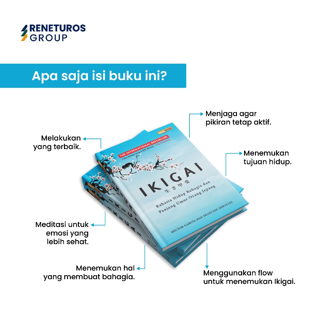 Renebook Buku Motivasi Ikigai Rahasia Hidup Bahagia dan Panjang Umur Orang Jepang - Hector Gracia