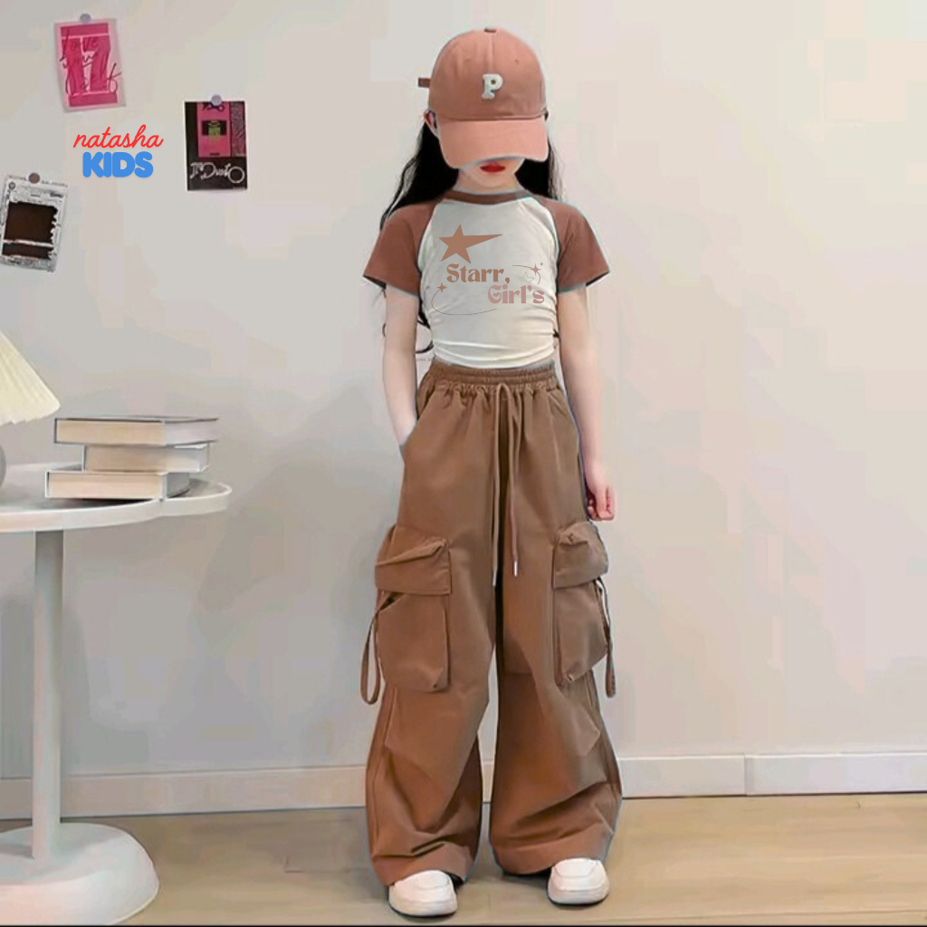 SETELAN ANAK PEREMPUAN CELANA KARGO DAN KAOS RAGLAN TERBARU BAHAN KATUN KOREA STYLE USIA 1-12 THN