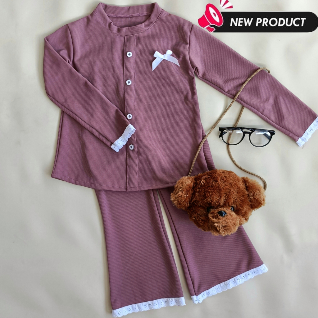 One Set Florencia Setelan Knit Anak Perempuan Premium Stelan Baju Anak Cewek Celana Cutbray Terbaru
