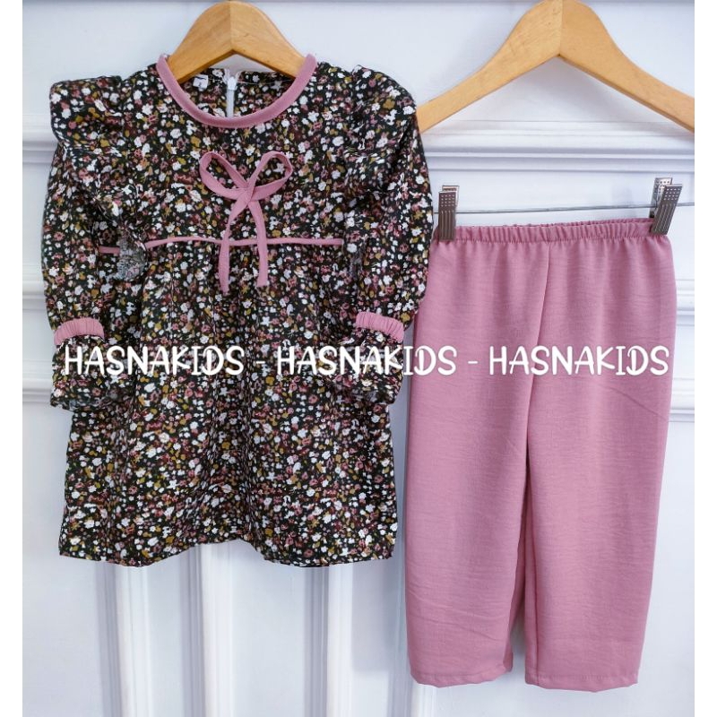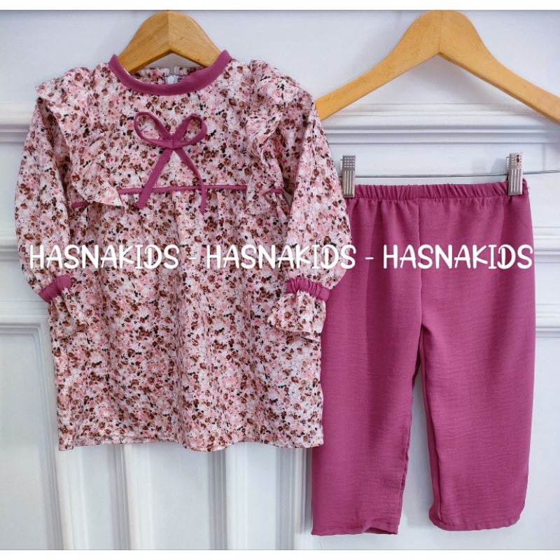 Setelan Anak Perempuan Crinkle Airflow Tunik Pita