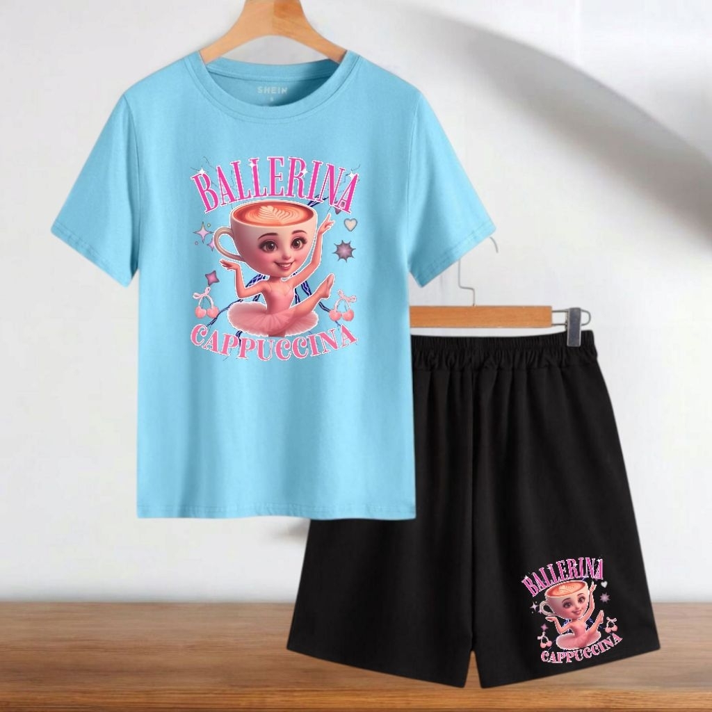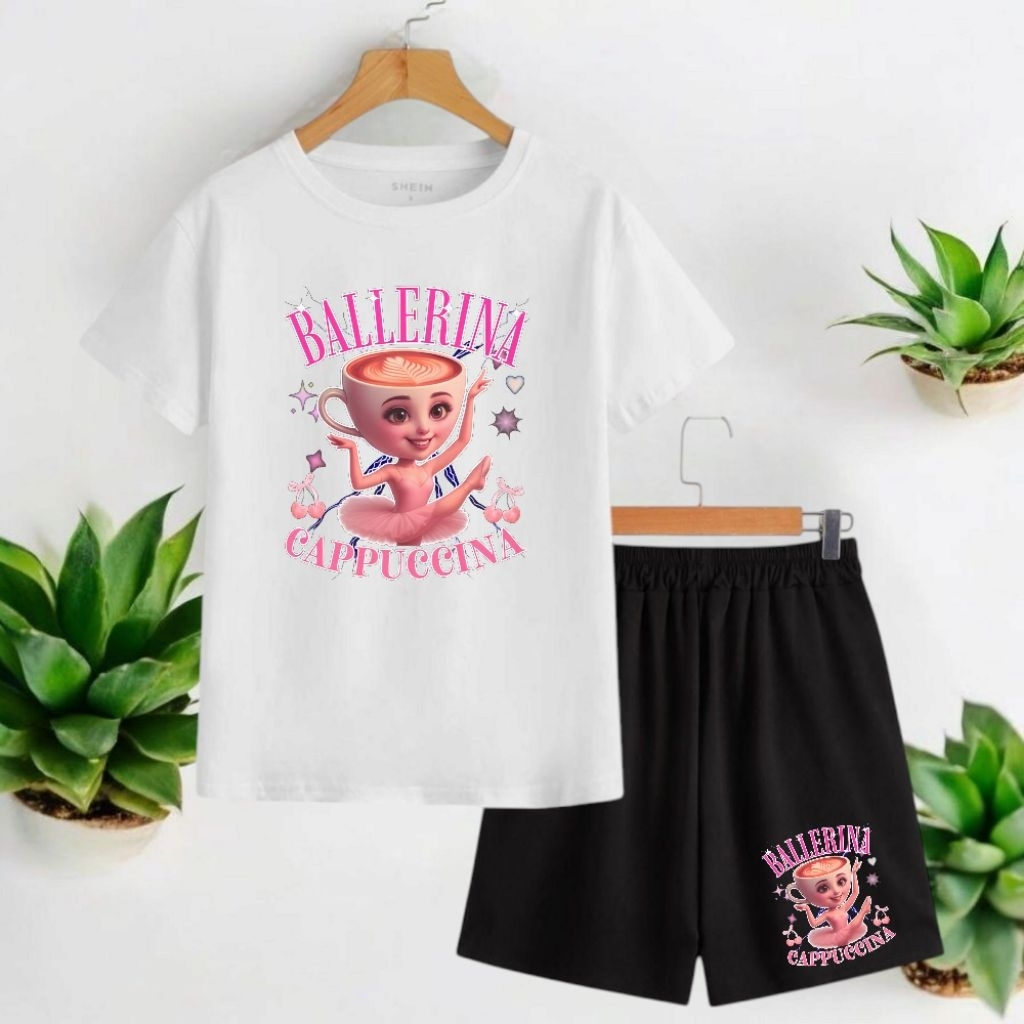 SETELAN KAOS BALLERINA CAPPUCCINA ANAK CEWEK USIA 2-9 TAHUN/BAJU SATU SET ANAK CEWEK ANOMALI BALLERINA CAPPUCCINA