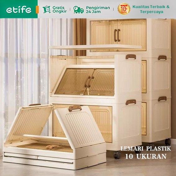 Lemari Penyimpanan Lemari Pakaian Plastik Lemari Lipat Plastik Susun Lemari Simpan Serbaguna