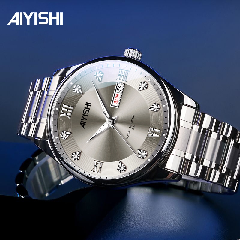 AIYISHI Jam tangan pria asli baru, jam tangan pria tahan air, rantai baja tahan karat Kasual Mekanikanalog bisnis be
