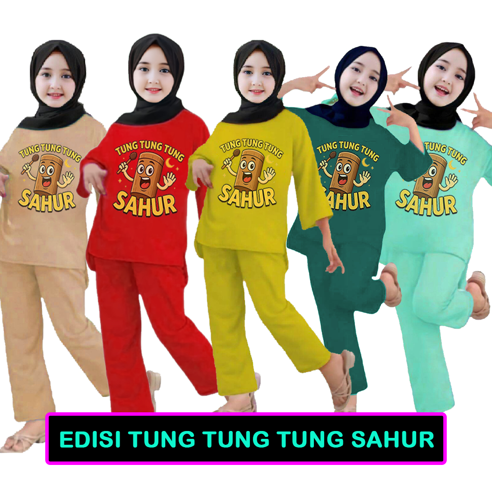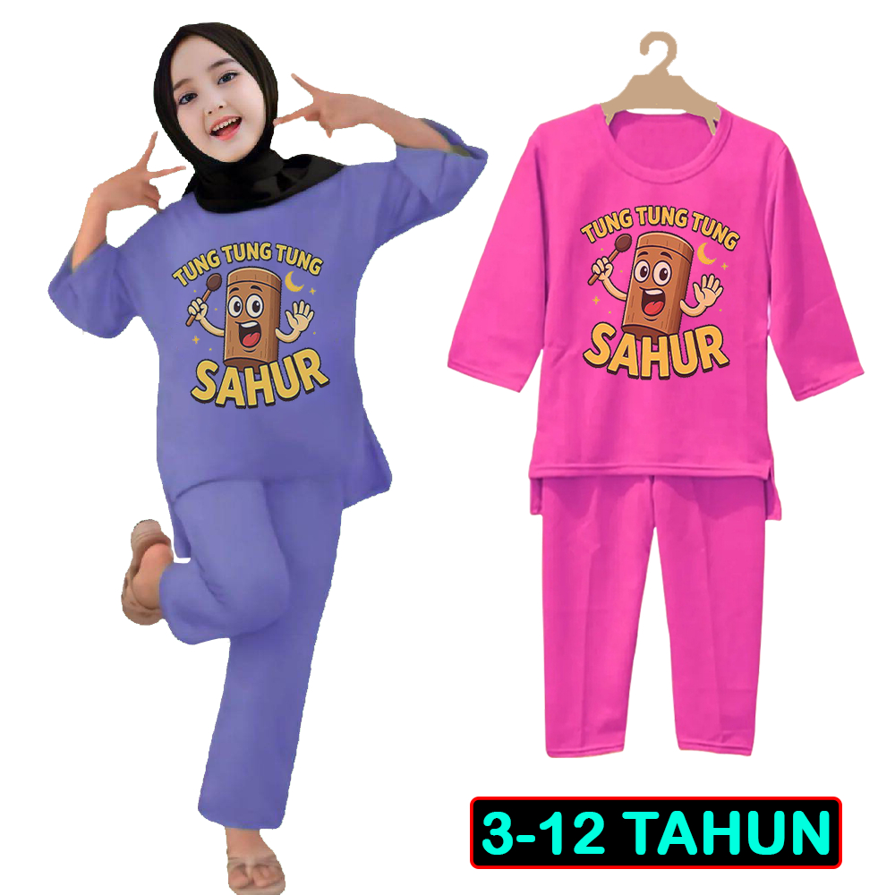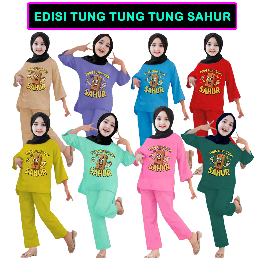 Setelan Anak Perempuan Viral Tung Tung Tung Sahur 3-12 Tahun Bahan Katun Baby Terry