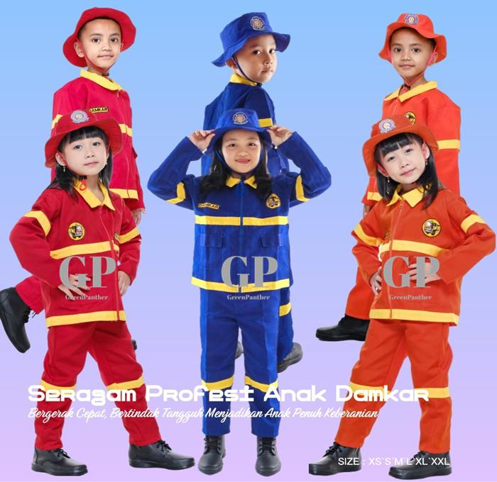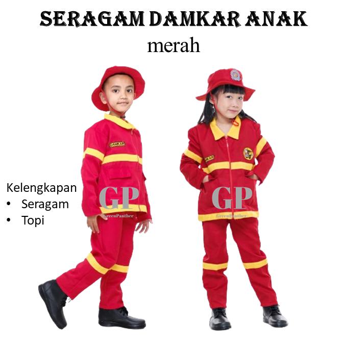 GROSIR BAJU SERAGAM DAMKAR ANAK PROFESI CILIK PEMADAM KEBAKARAN KARNAVAL AGUSTUS KOSTUM POCIL MURAH Fashion - Damkar