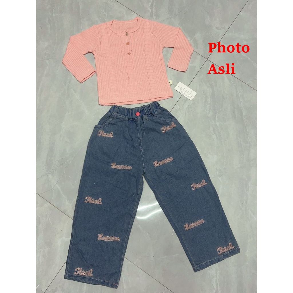 Setelan Anak Perempuan Terbaru Baju Lengan Panjang + Celana Jeans Panjang