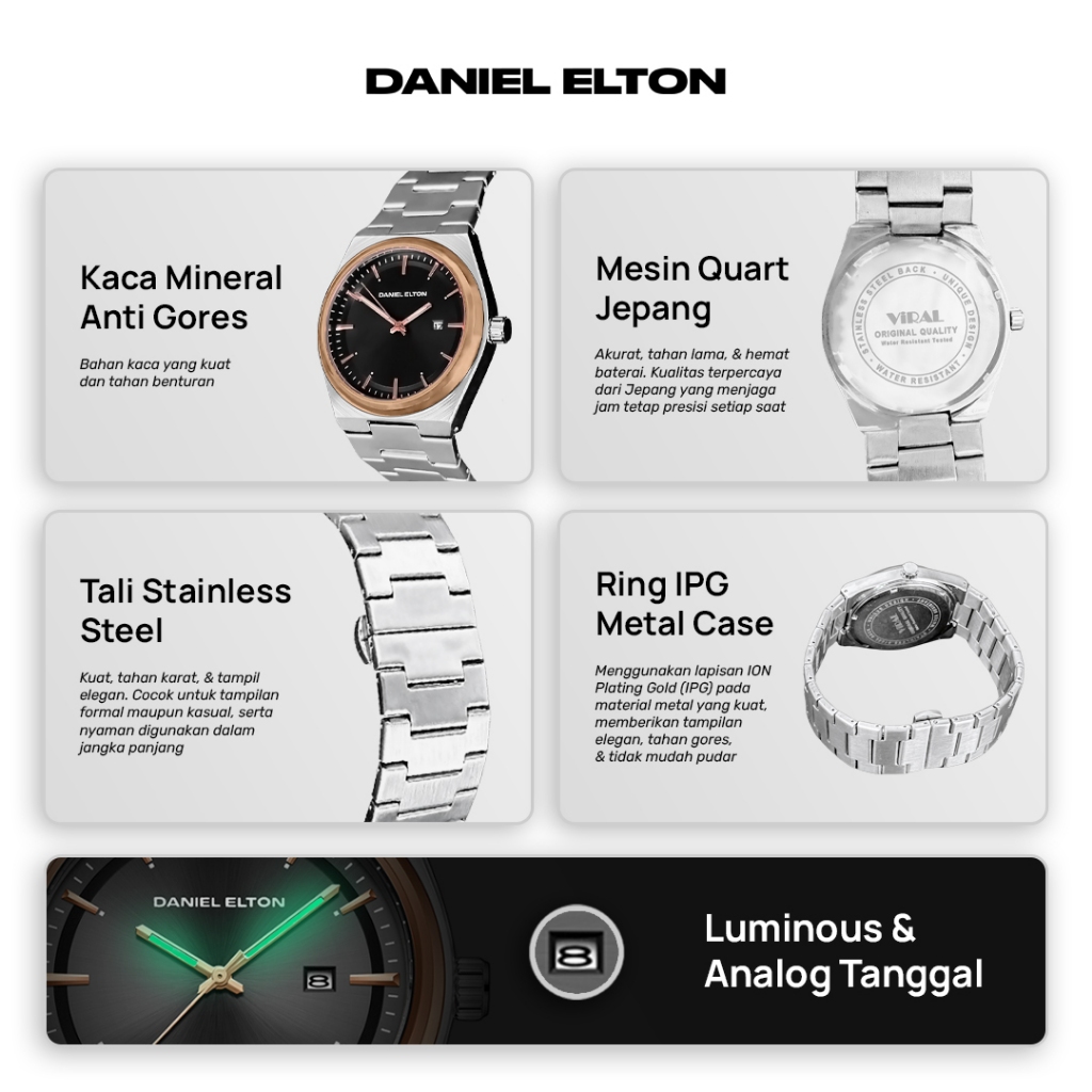 Daniel Elton Watch - Jam Tangan Analog 1199 Japan Quality Water Resistant 30M Stainless steal