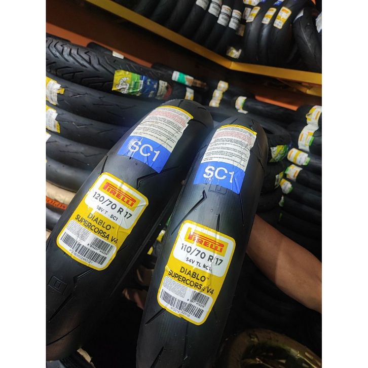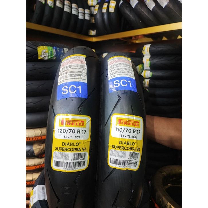 READY 1SET BAN PIRELLI 110/70-17 DAN PIRELLI 120/70-17 DIABLO SUPER CORSA V4 Ban Motor GTR 150, CBR, MT09, MX KING 150