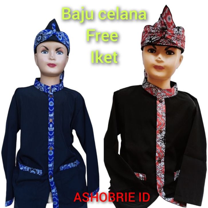 EKSKLUSIF stelan baju adat Sunda free iket/baju pangsi anak SD usia 3_12 tahun motif batik nasional ehobb
