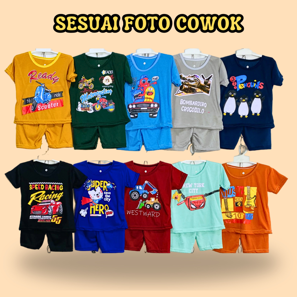 PAKET 10 SETEL Setelan Anak Laki Laki Perempuan Stelan Cowok Cewek Celana Pendek 4 - 5 Tahun Kode 12