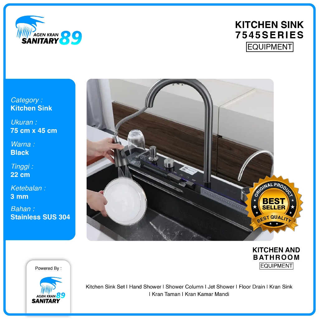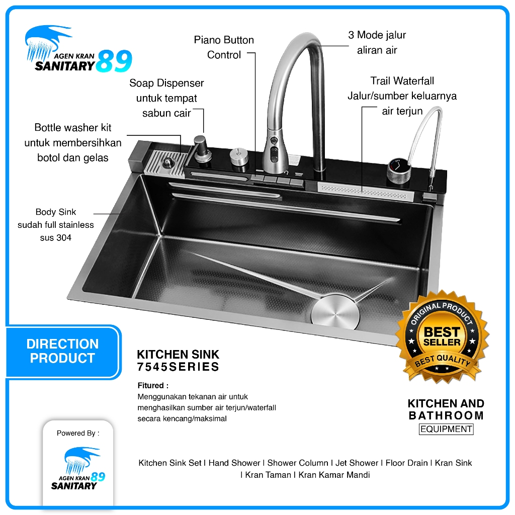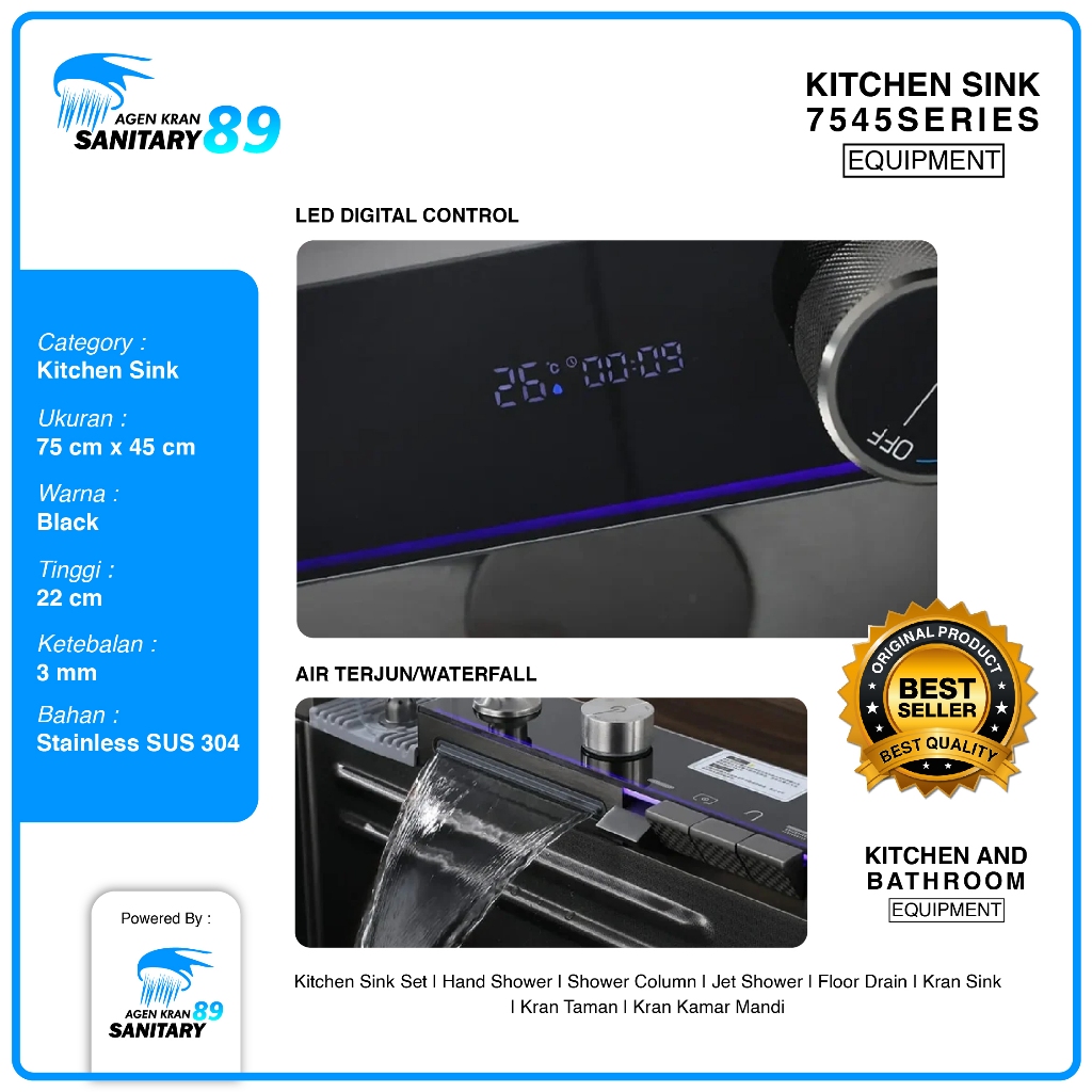 SR - WASTAFEL CUCI PIRING/WASTAFEL CUCI PIRING STAINLESS/LED/KITCHEN SINK MODERN LED PIANO 7545 (BLACK AND )