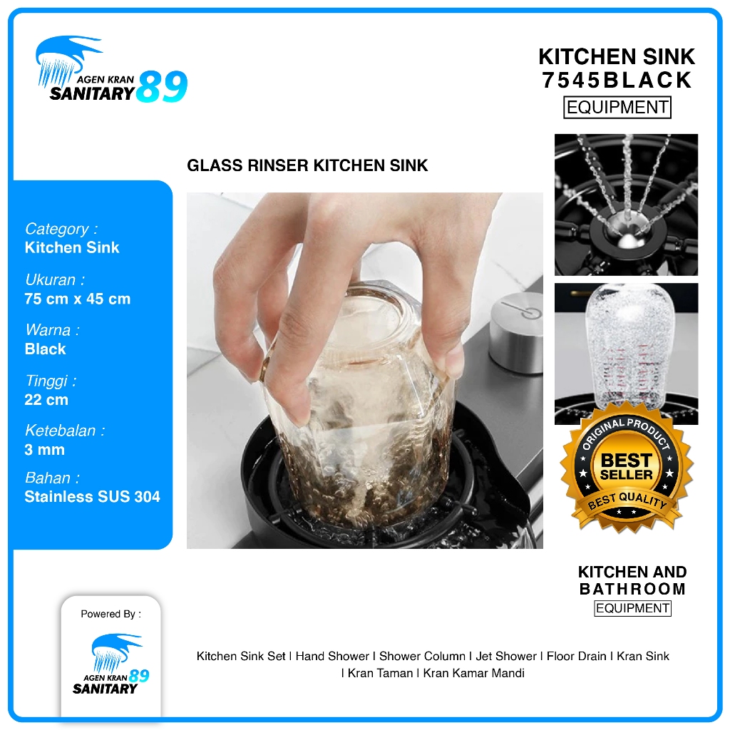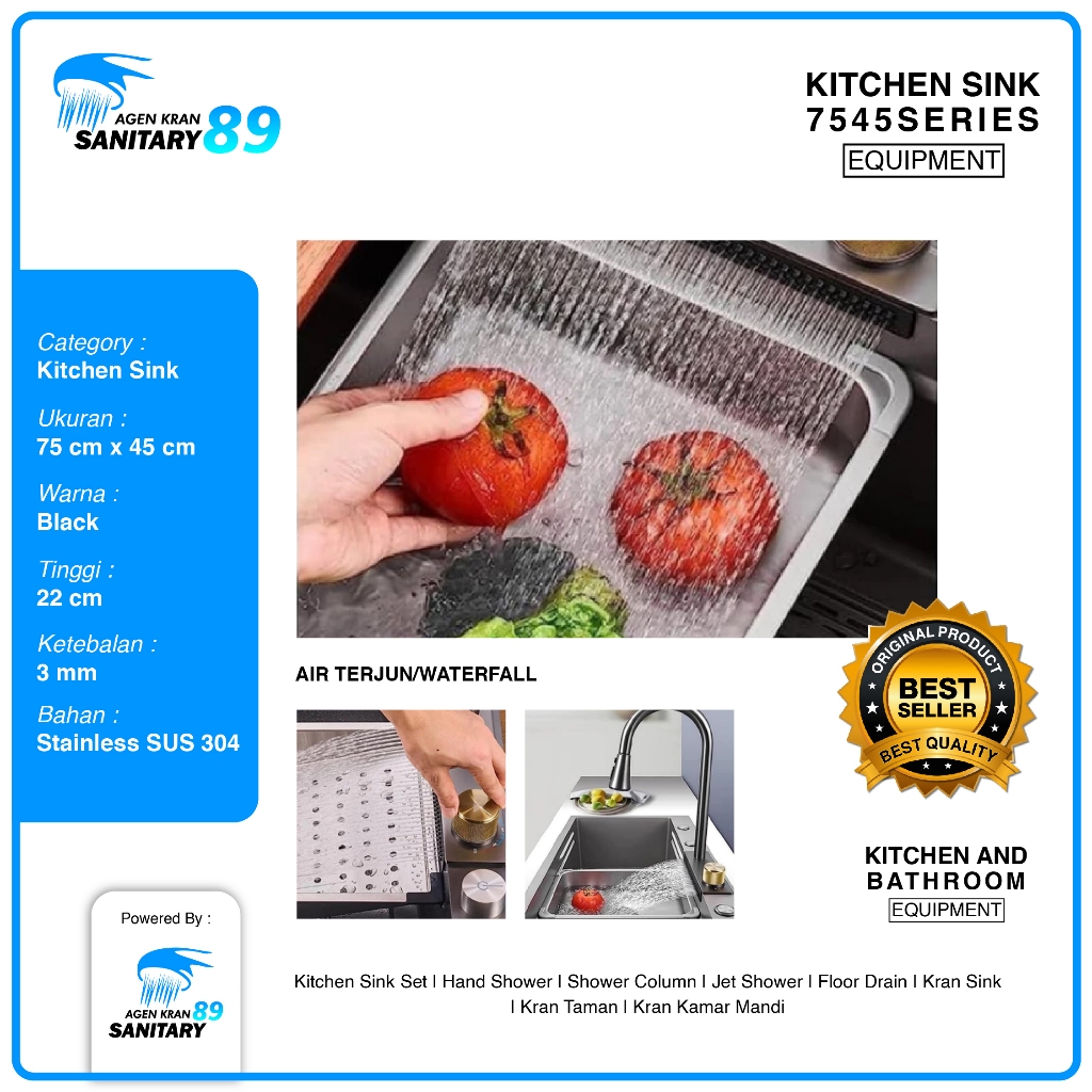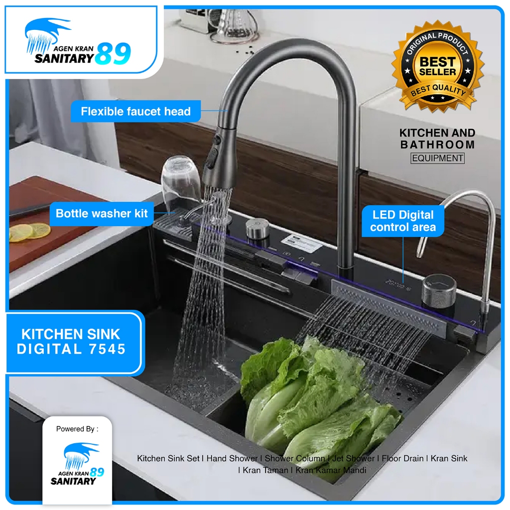 SR - WASTAFEL CUCI PIRING/WASTAFEL CUCI PIRING STAINLESS/LED/KITCHEN SINK MODERN LED PIANO 7545 (BLACK AND )