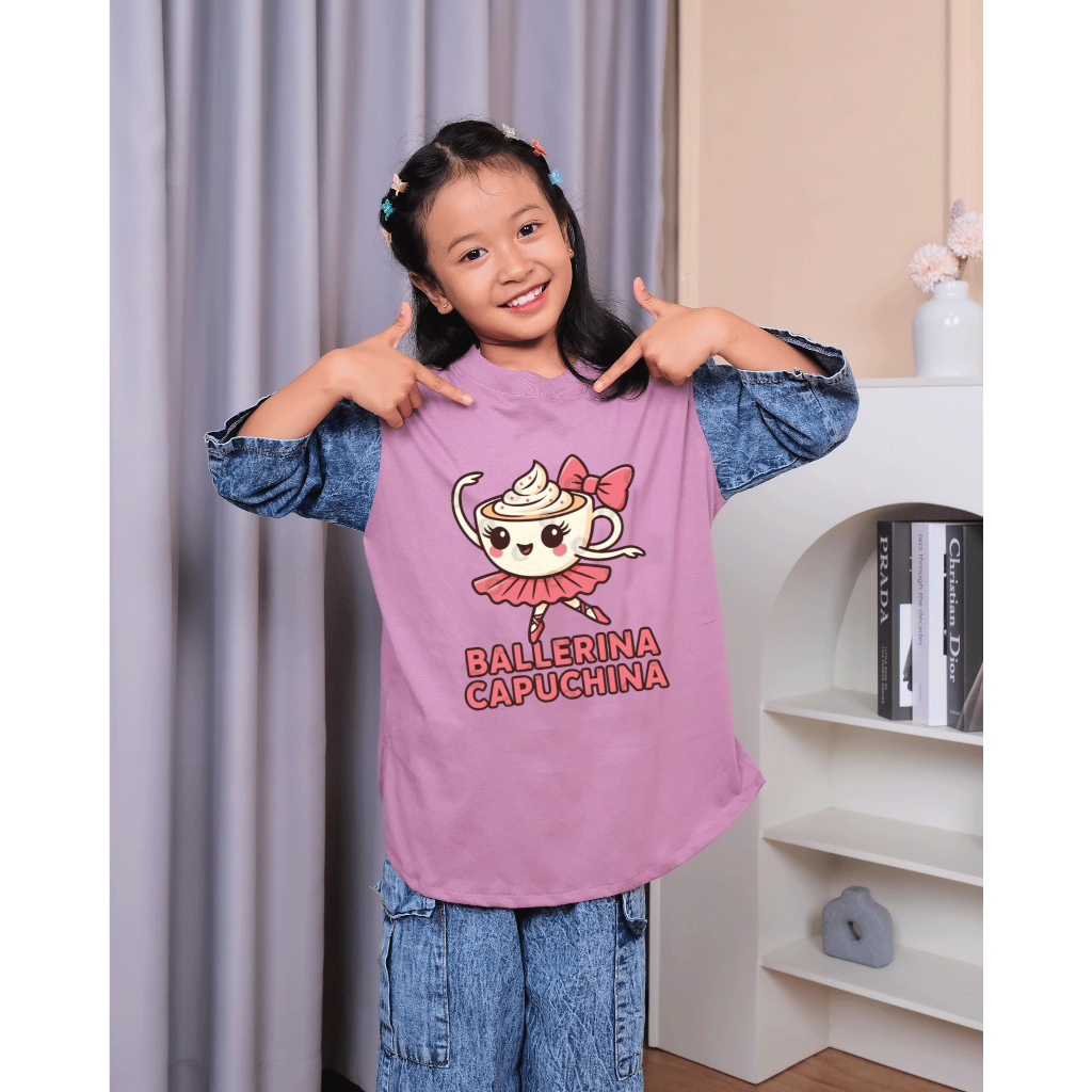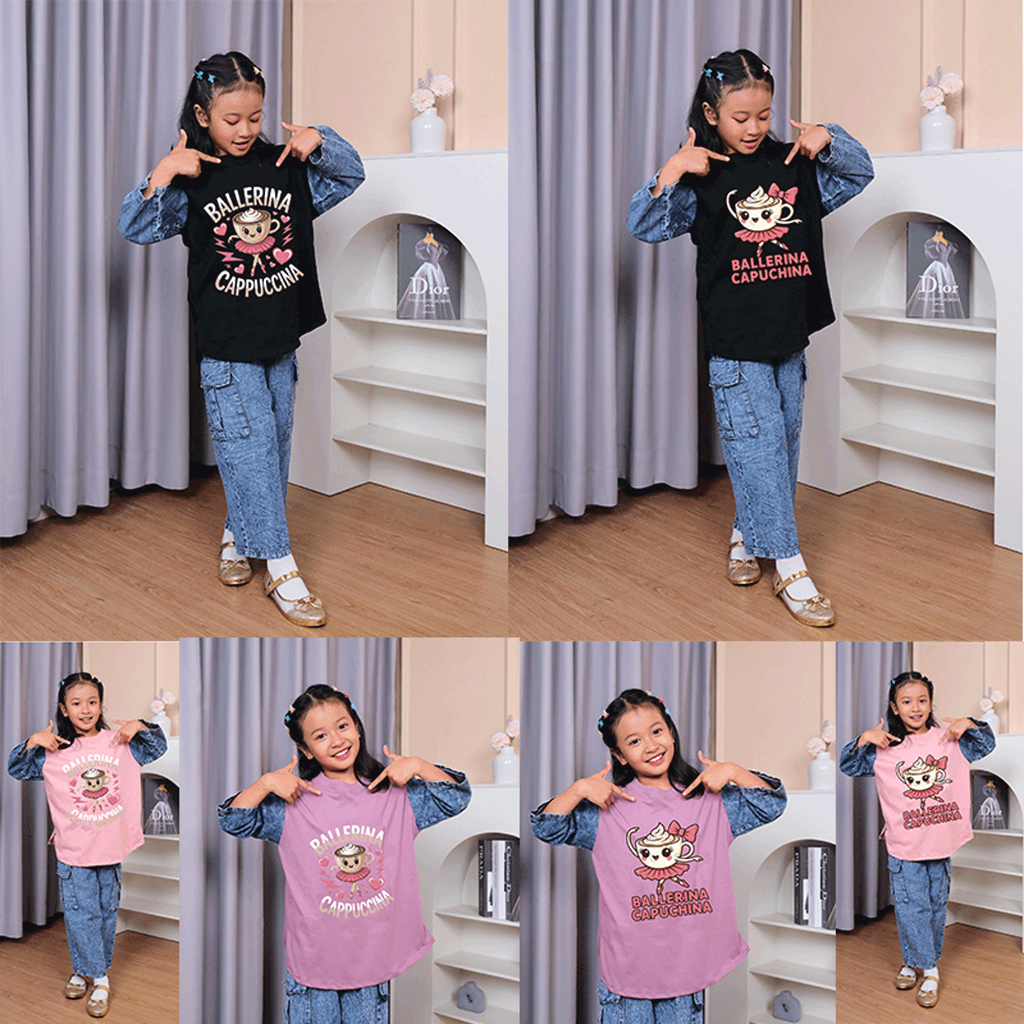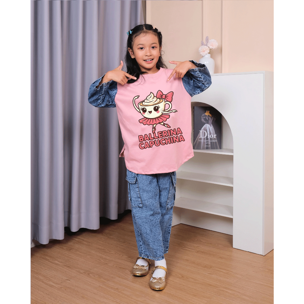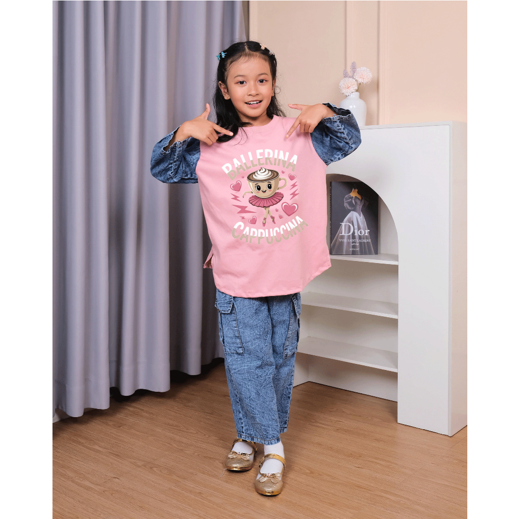 Setelan anak perempuan Ballerina bahan katun combad kombinasi denim Baju setelan anak perempuan