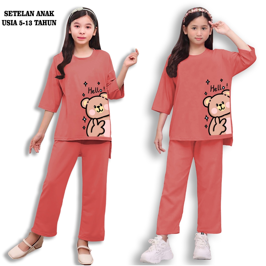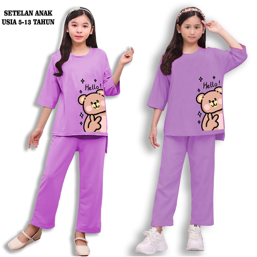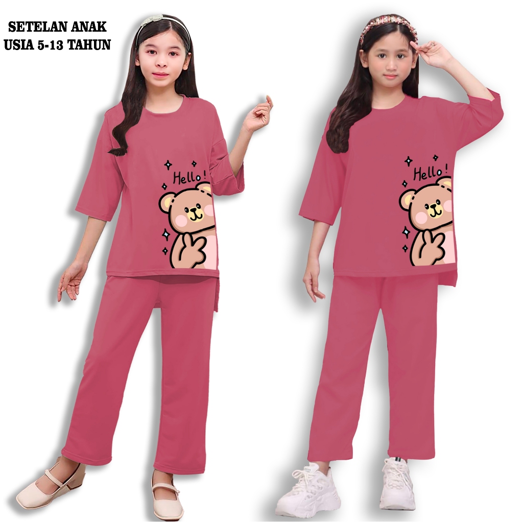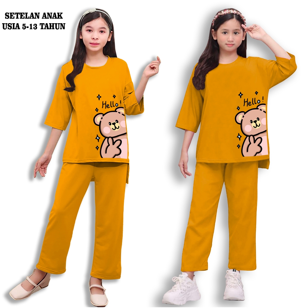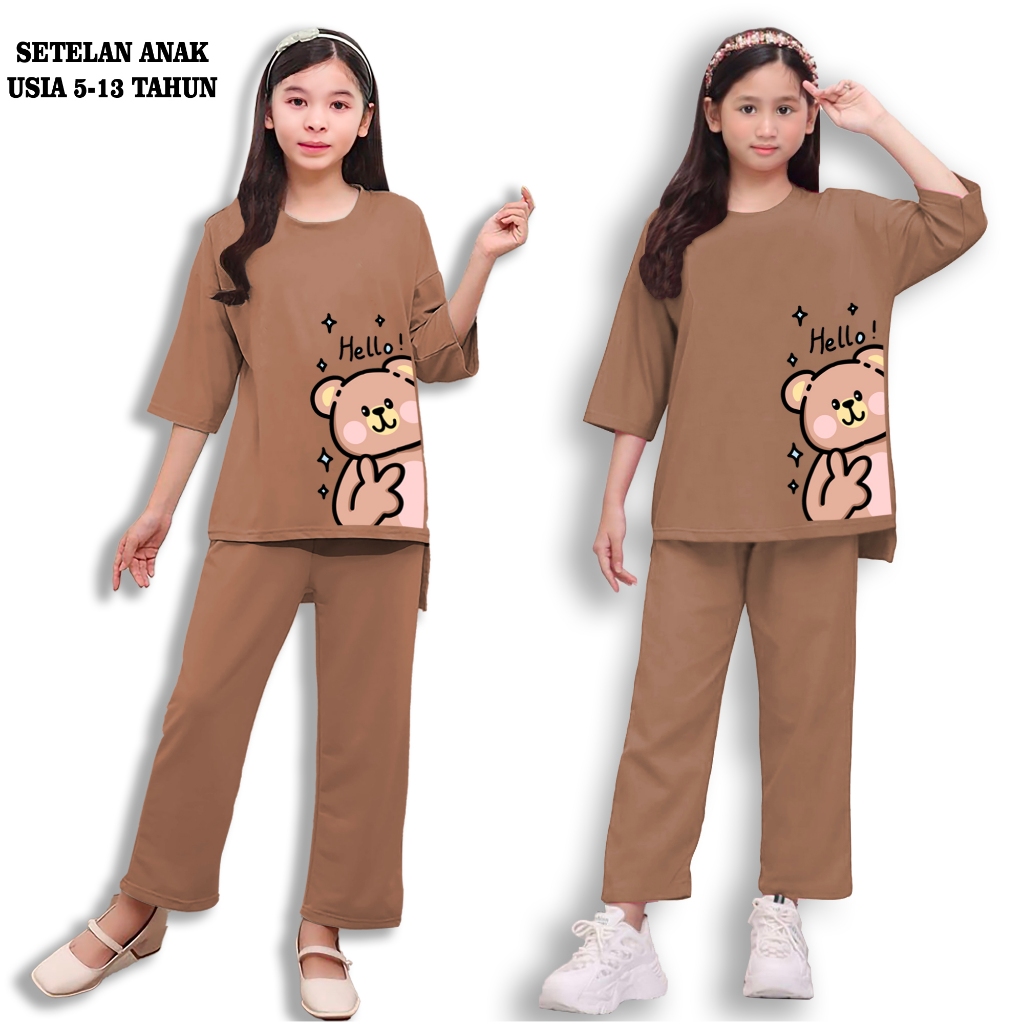 Setelan Anak Perempuan Bear Peace Side Usia 5-13 Tahun Setelan Anak Dorina