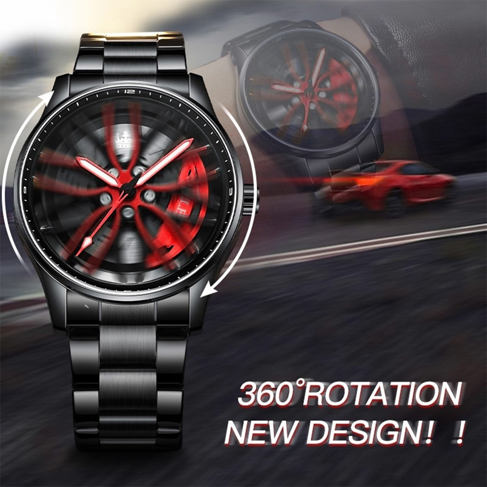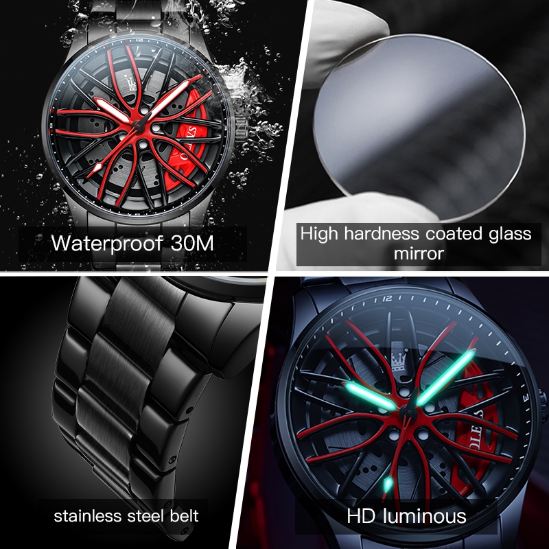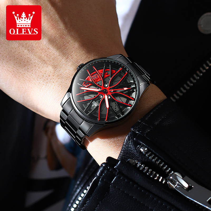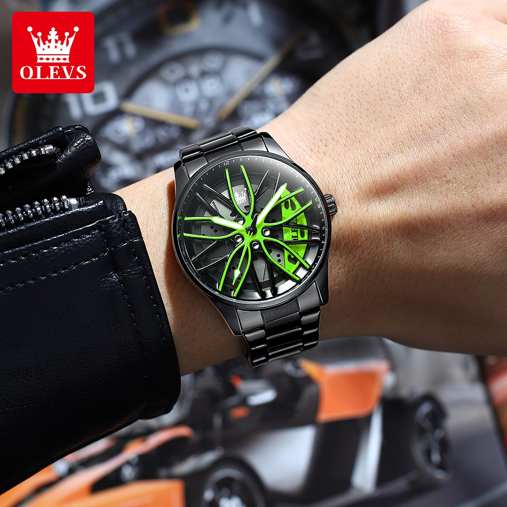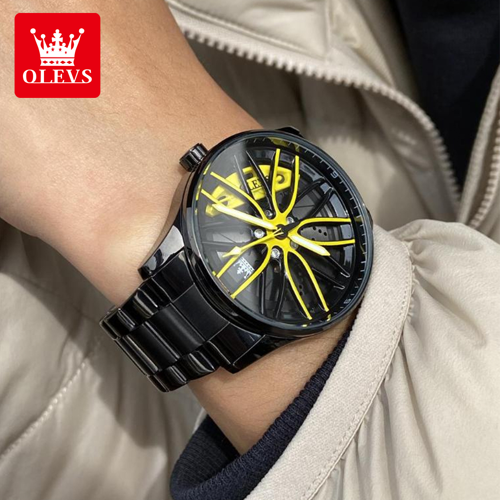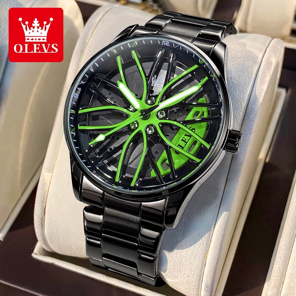 OLEVS Jam Tangan Pria Anti Air Original Asli Keren Velg Racing Desain Mewah Stainless Steel Hitam Arloji Pria Fashion Aesthetic Terbaru 2025 Quartz Watch Men 9937