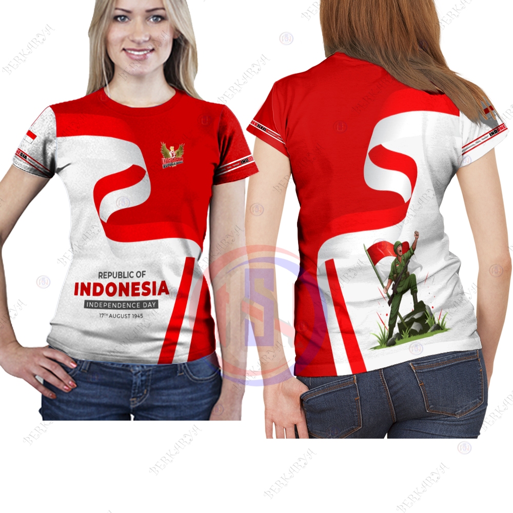 Baju Wanita Kaos Jersey 17 Agustus Dirgahayu HUT RI 80 Kaos 17 Agustusan 2025 Full Printing