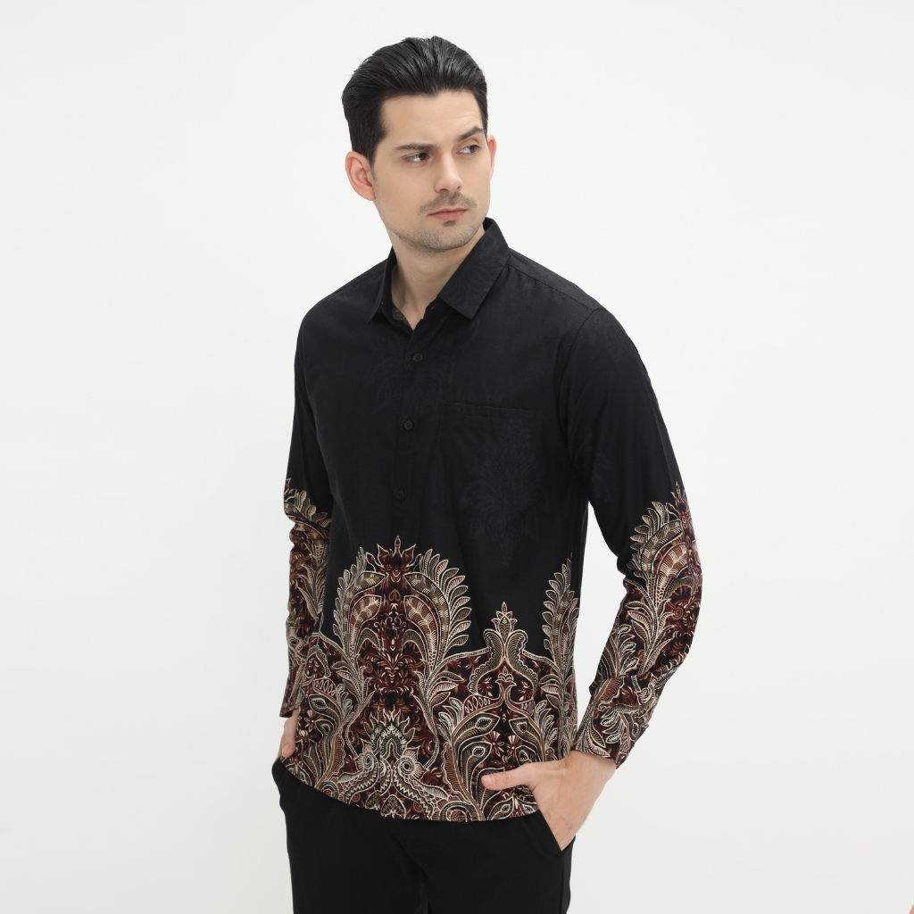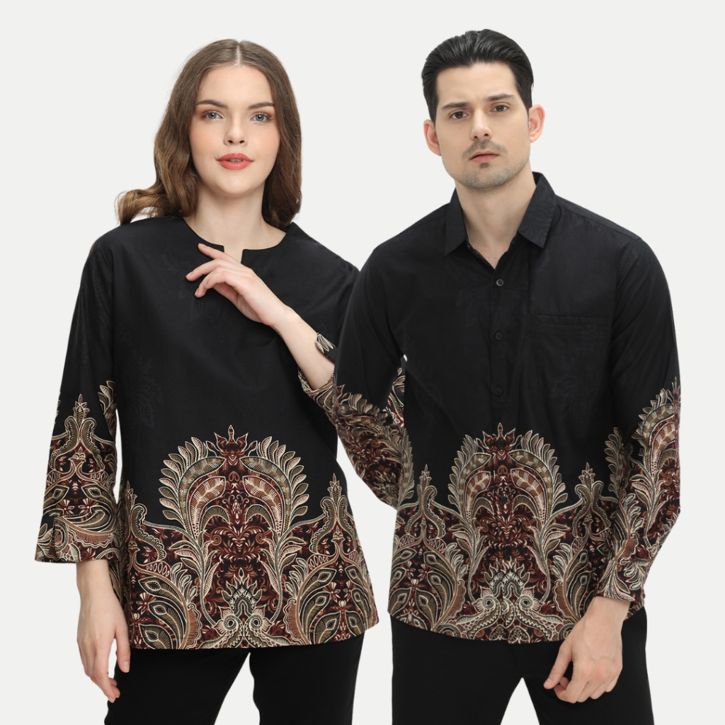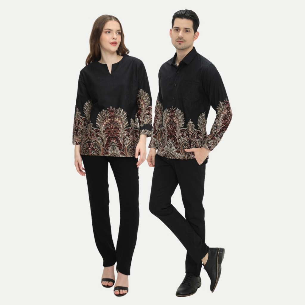Batik Couple Atasan Batik Pria dan Wanita Hitam OLR225