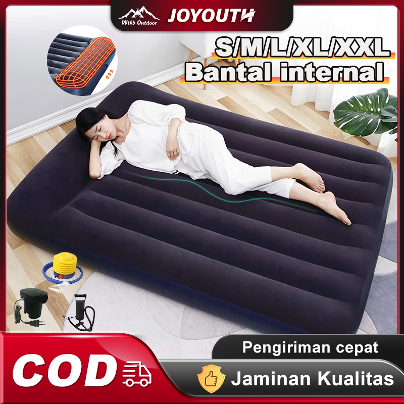 JOY Kasur Angin Dengan pompa udara matras angin Termasuk Bantal Portable tahan air kasur tiup Outdoor Indoor Car Matress