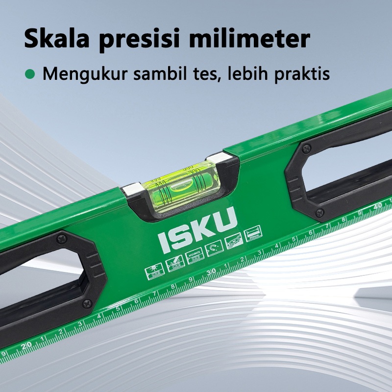 ISKU Spirit Level Waterpass Magnet Aluminium Akurat 30/50/60/80/100CM Penggaris Pengukur Horizontal Akurat Perkakas Hori
