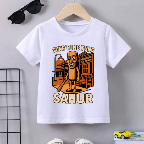 Kaos Anak Unisex Usia 2-12Tahun Tung Tung Sahur Baju anak Atasan Dalaman Oblong Distro Lengan Pendek