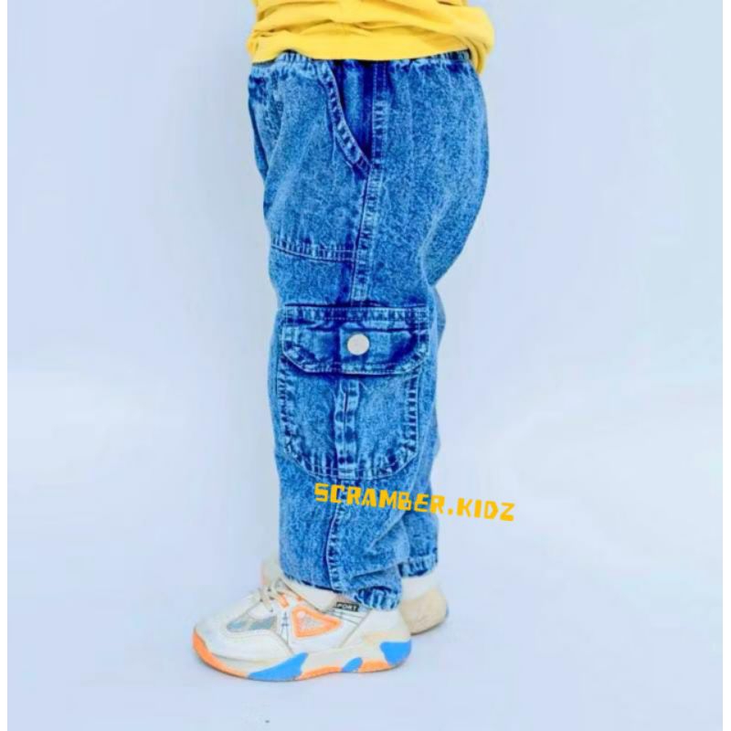 Celana Panjang Cargo Anak 2-7 Tahun Bahan Jeans