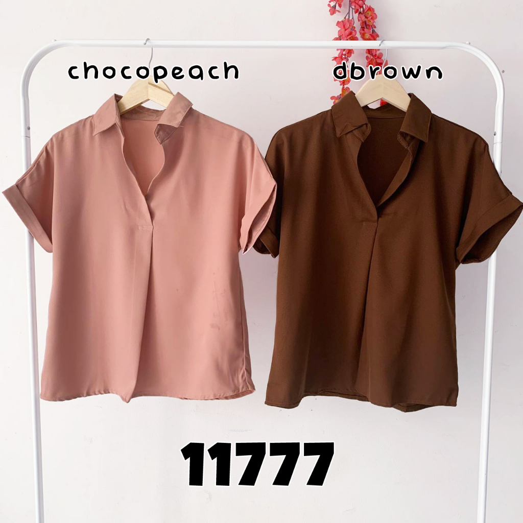 Baju atasan kemeja lengan pendek pergi kuliah jalan santai casual fashion cewek wanita murah -11777