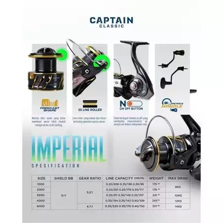 senar pancing reel pancing captain imperial sw power handle 2000-4000