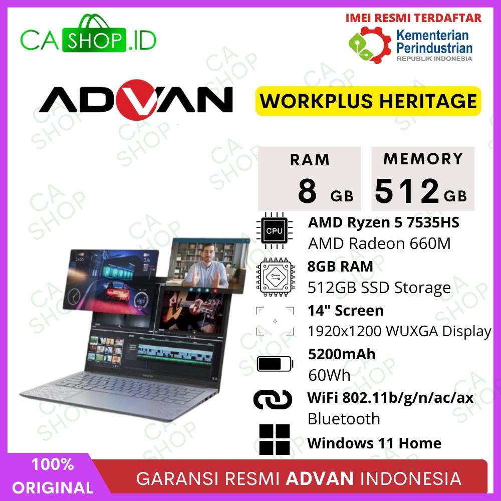 Laptop Advan Workplus Heritage RAM 8GB / 16GB 512GB SSD Notebook Ryzen Windows 11 New Original Garansi Resmi