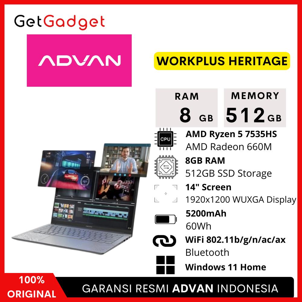 Laptop Advan Workplus Heritage RAM 8GB / 16GB 512GB SSD Notebook Ryzen Windows 11 New Original Garansi Resmi