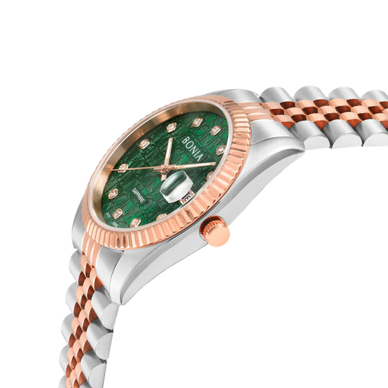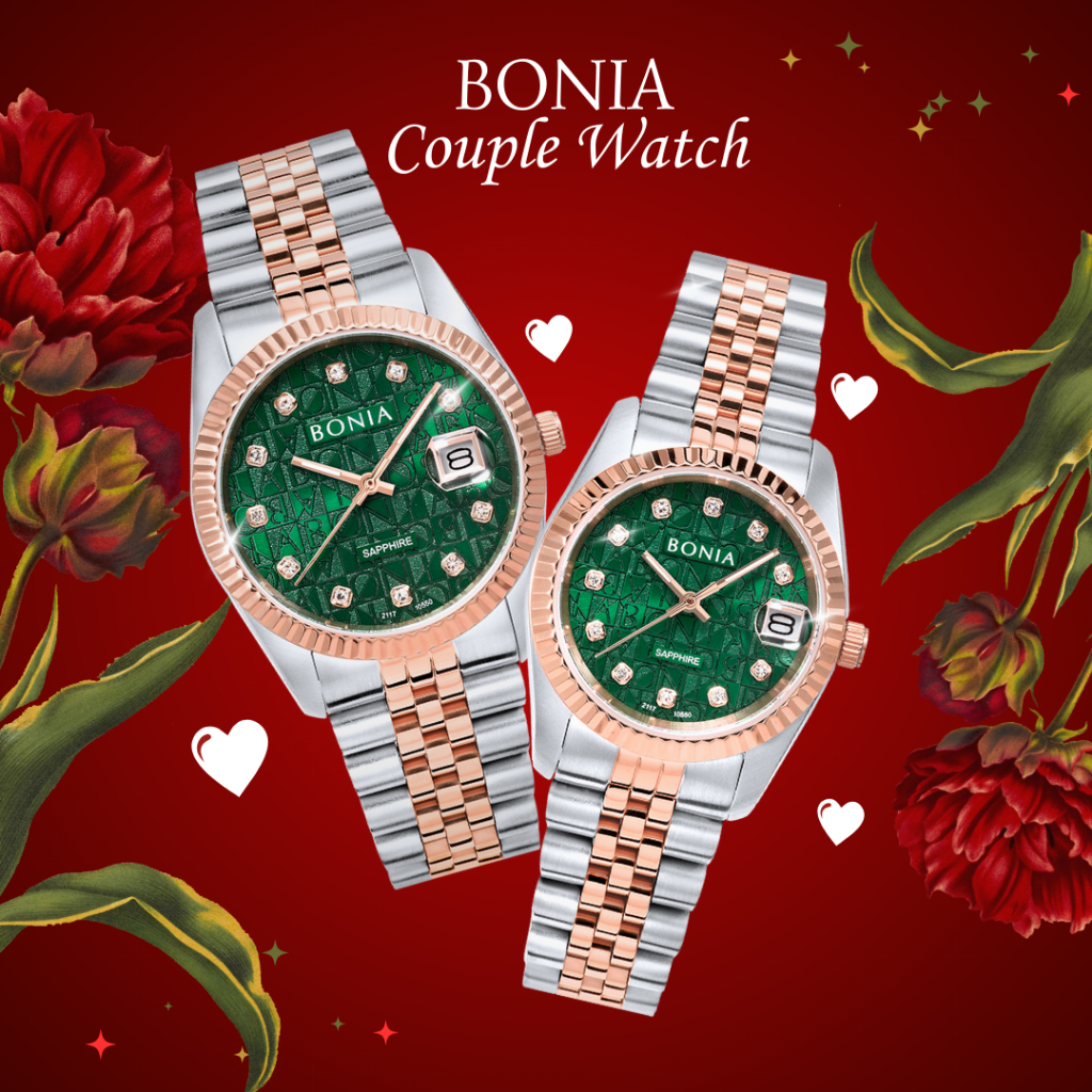 Jam Tangan Couple BONIA Noble Green Monogram B10550-1696/3696 Original