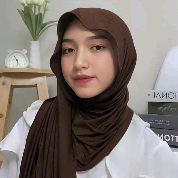 Kerudung Pashmina Kaos Rayon Meleyot - Mahogany - hitam