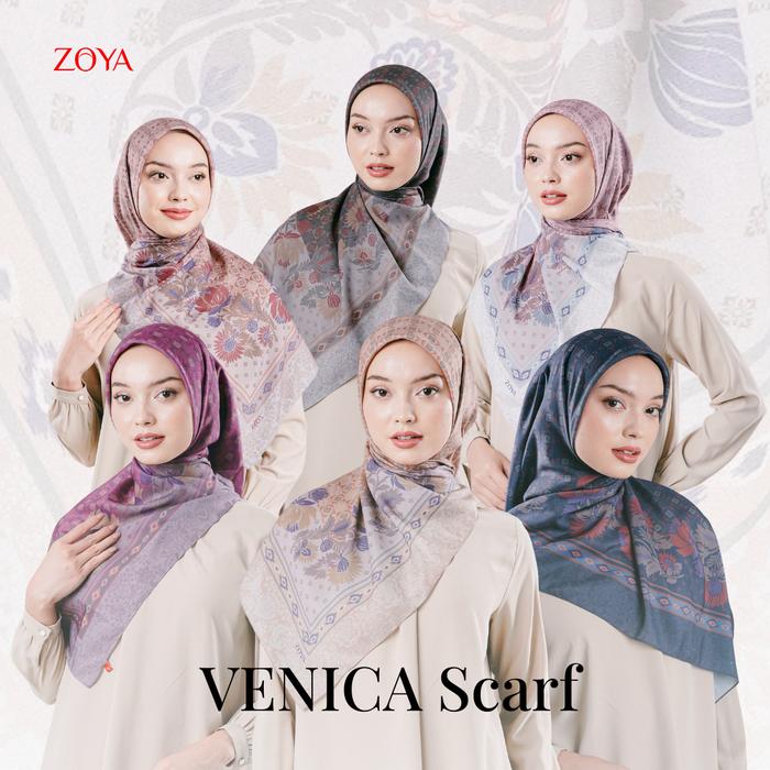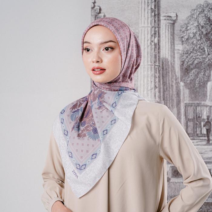 Zoya - VENICA Scarf - Kerudung Hijab Segiempat Motif With Pouch Ziploc - Dusty Pink