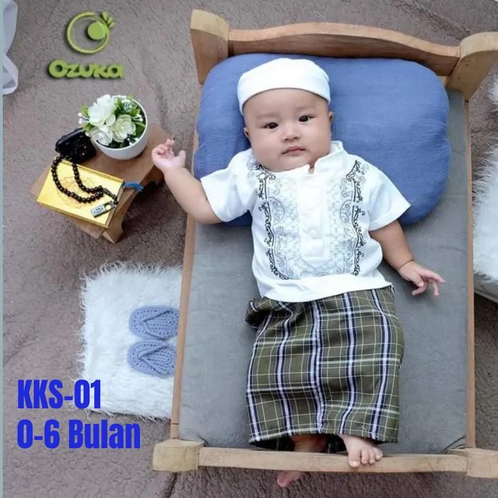 baju koko bayi laki laki 0 6 bulan new born 6 12 bulan sarkoci ozuka - KKS.01 Putih, 0-6 Bulan