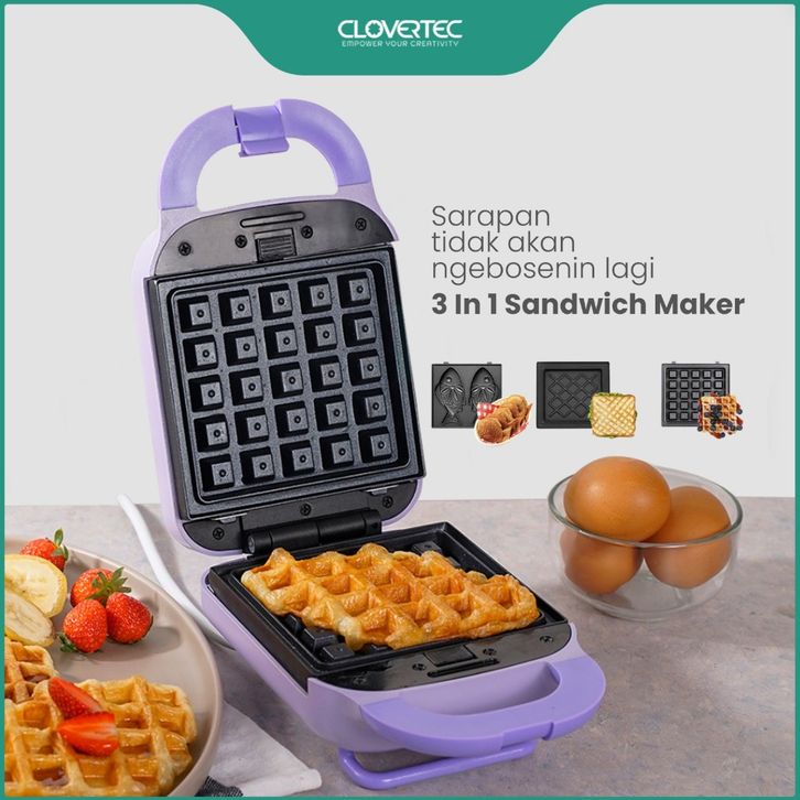 NEW CLOVERTEC Sandwich Waffle & Pancake Maker 3in1 plates CSM-105 abadmn