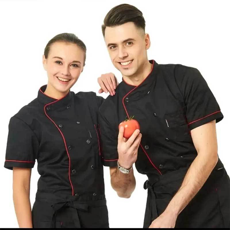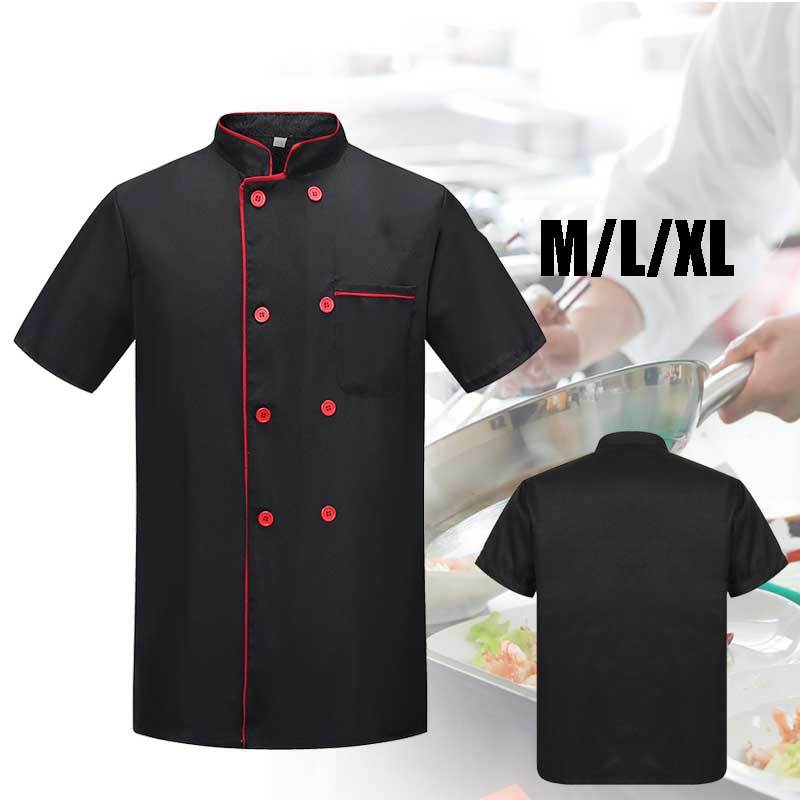 Baju Koki / kemeja chef /Chef Jacket Lengan Pendek/Seragam Chef /Kemeja Kerja Chef Unisex Lengan Pendek