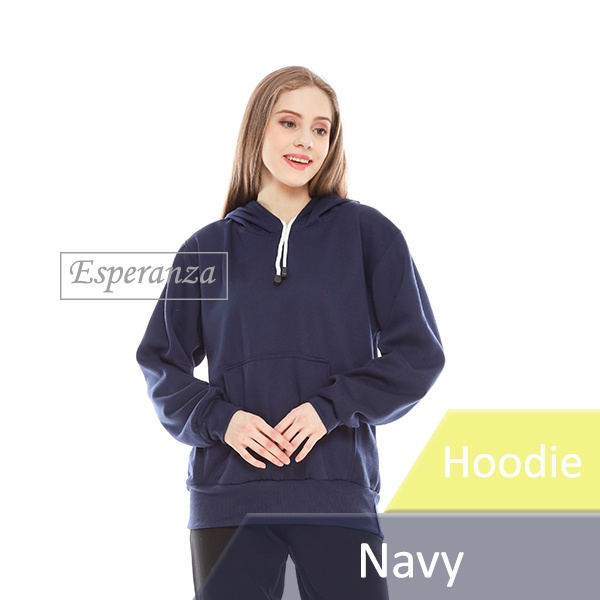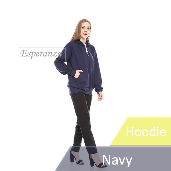 SWEATER POLOS HOODIE FLEECE ESPERANZA OUTWEAR PRIA WANITA - BIRU NAVY
