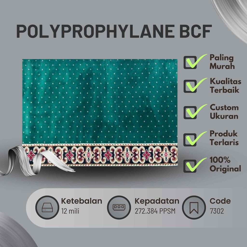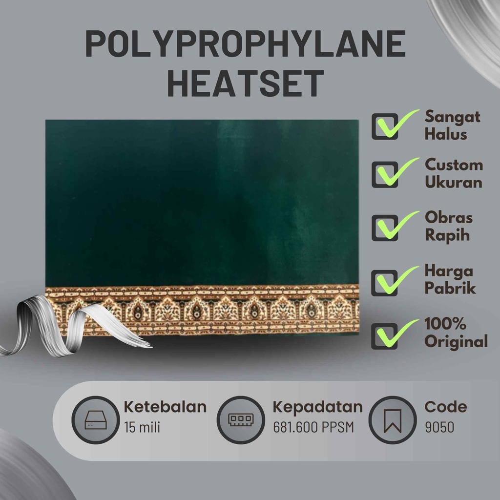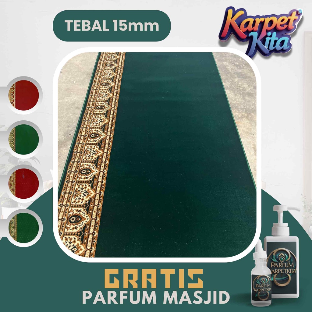 Karpet Masjid Sajadah Musholla Al Maqbul 15 mm Permeter Motif Hijau Polos