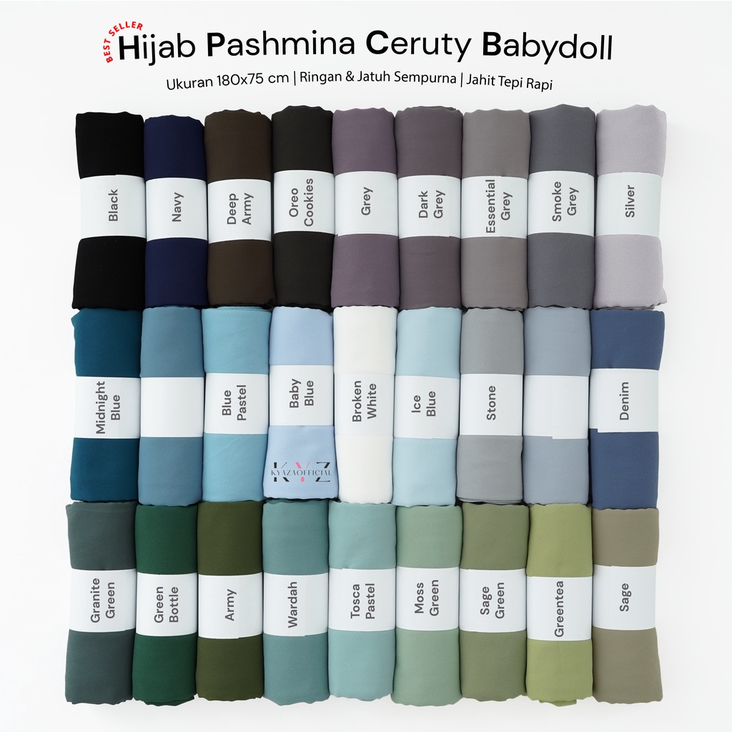Pashmina Ceruty Babydoll Import (Jahit Tepi) KYZ1