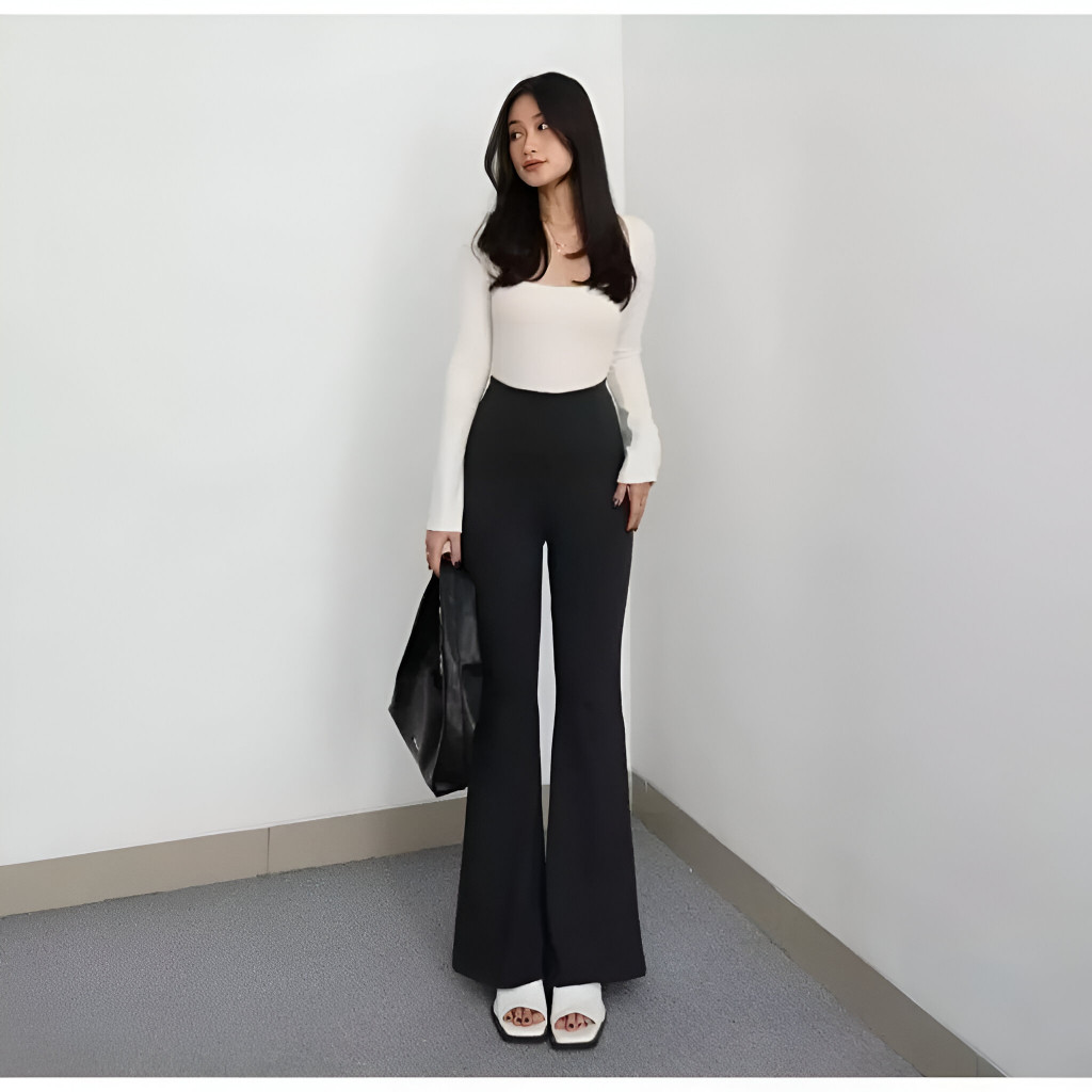 CELANAKU - CELANA PANJANG SCUBA KULOT FIT AND FLARE PANTS CUTBRAY HIGHWAIST BAHAN STRETCH