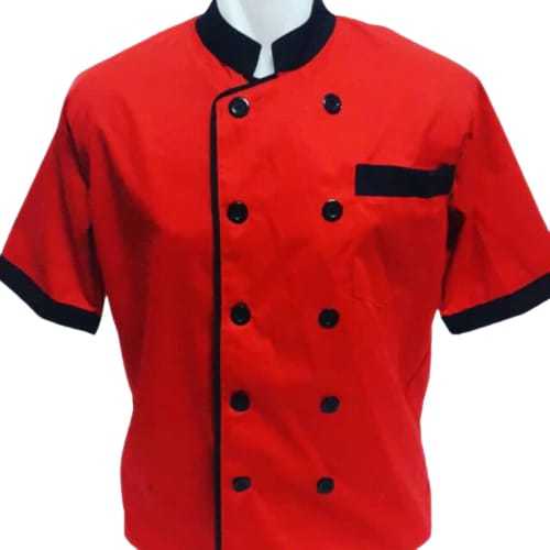 Baju Chef Kemeja Lengan Pendek Koki Pria Wanita Seragam Masak Bahan American Drill
